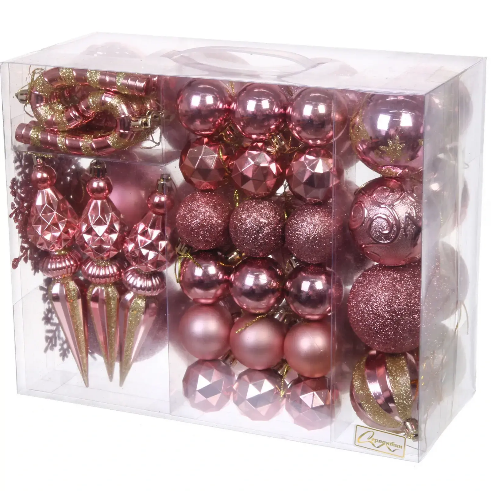 Почему стоит выбрать именно этот набор? Во-первых, он включает 50 предметов, что позволяет вам украсить ёлку и другие места в доме без лишних затрат. Во-вторых, розовое золото — это модный и актуальный цвет, который прекрасно сочетается с другими оттенками и добавляет элегантности. В-третьих, все украшения выполнены из качественного пластика, что обеспечивает их долговечность и устойчивость к повреждениям.