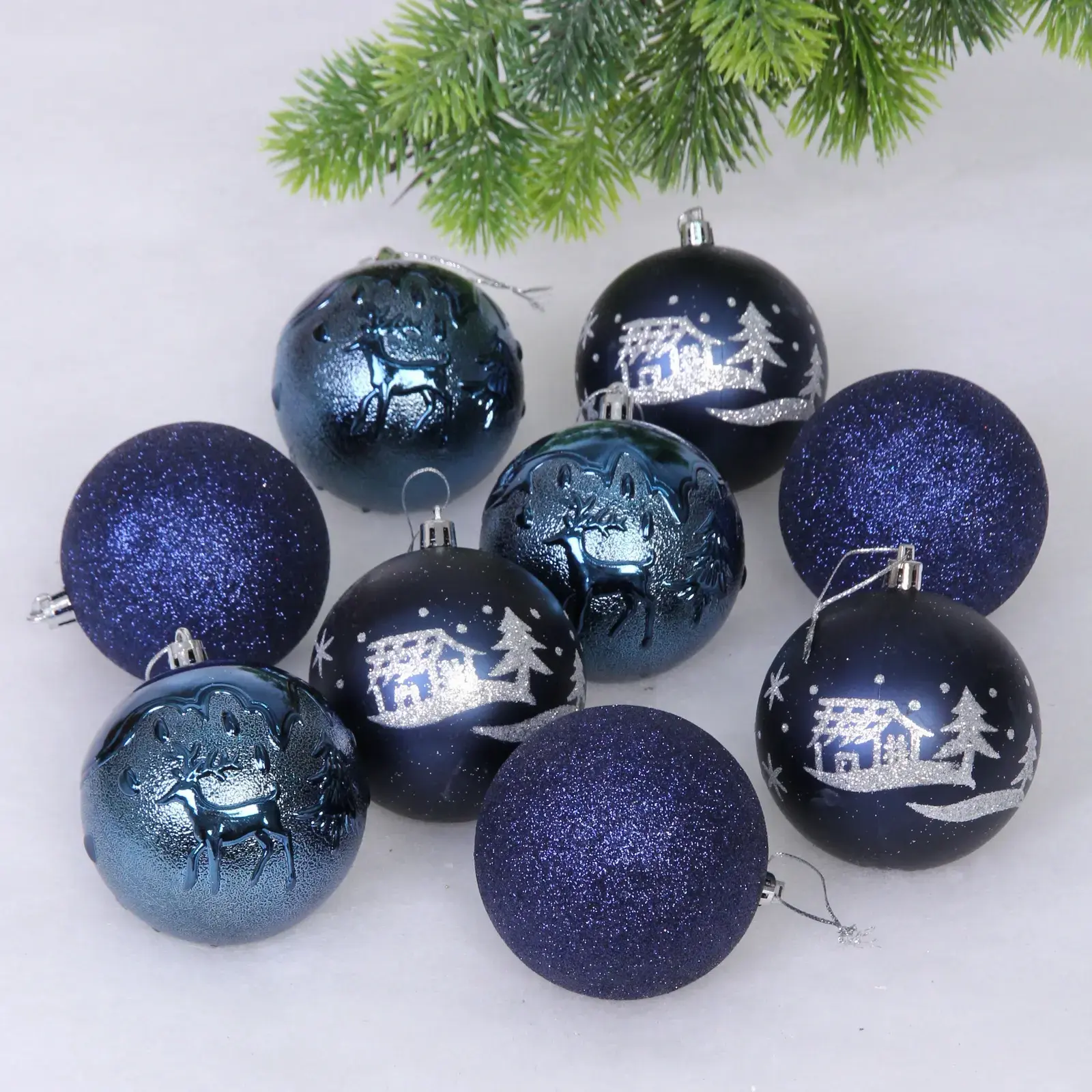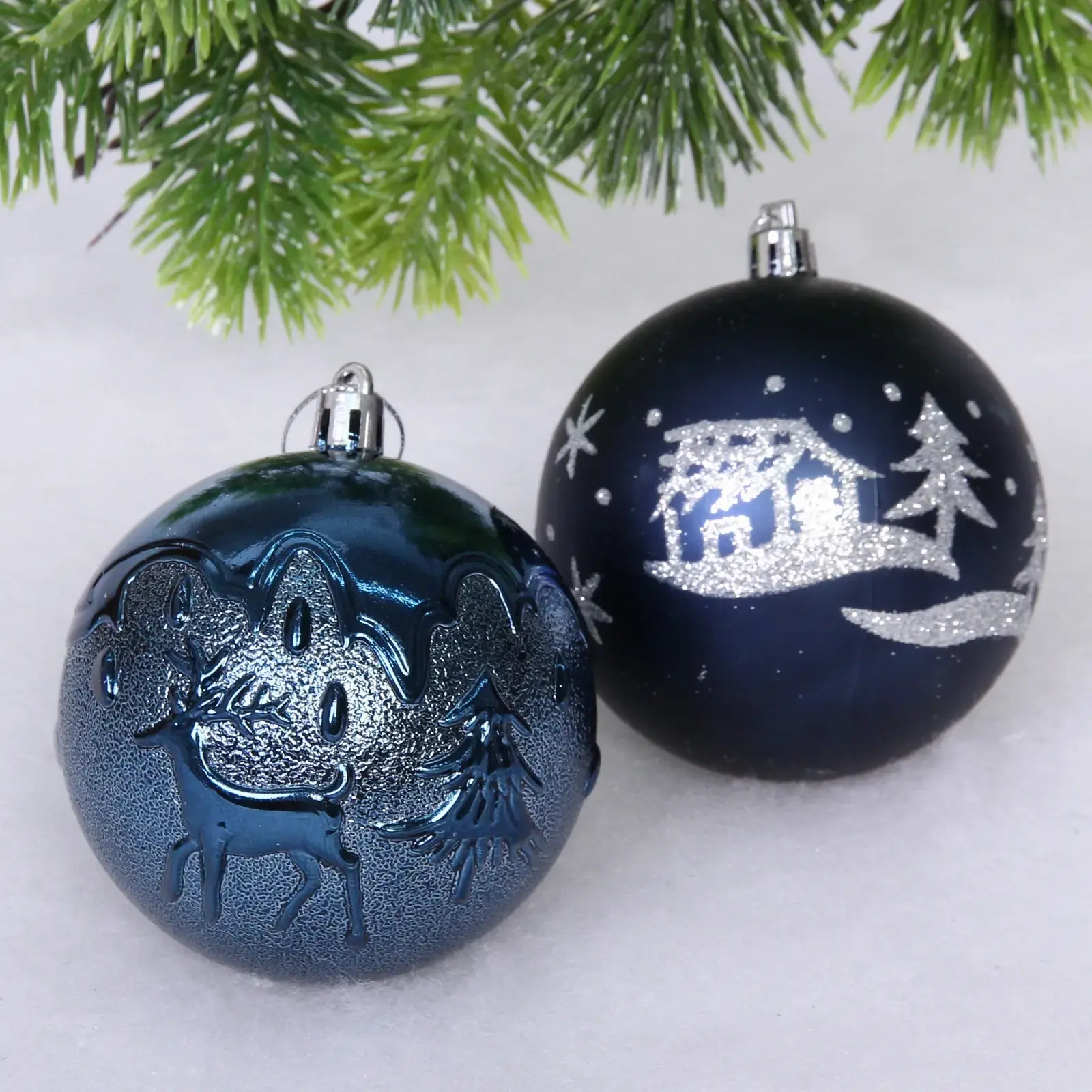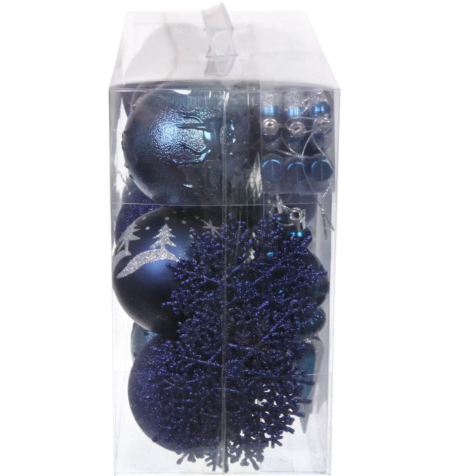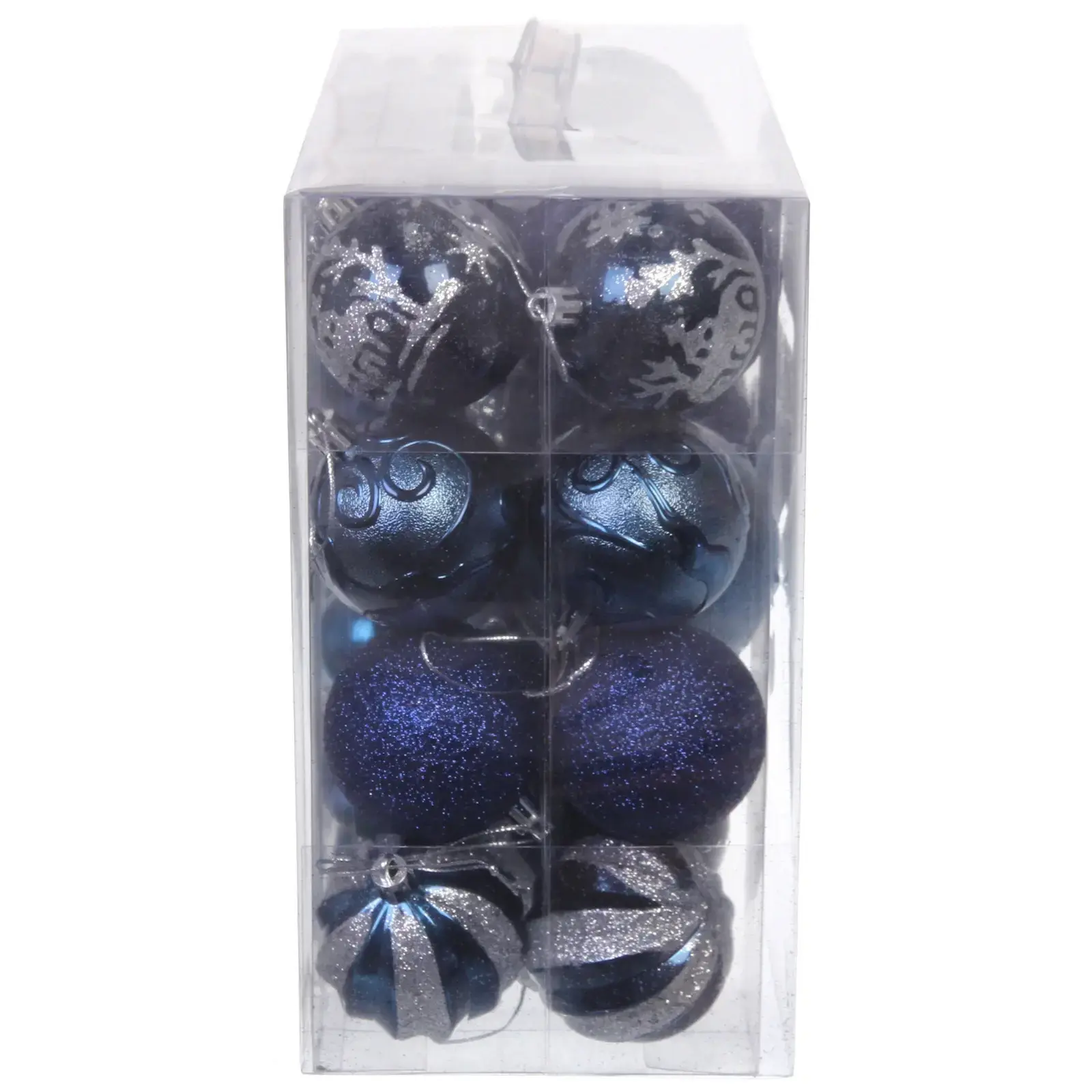 Каждое украшение в наборе имеет уникальный дизайн, включая матовые, глянцевые и блестящие поверхности. Цветовая гамма включает в себя различные оттенки синего, что делает набор универсальным для любого стиля оформления. Размеры шаров 6 см и 4 см идеально подходят для украшения ёлки, а также для создания праздничных композиций на столе или в интерьере.