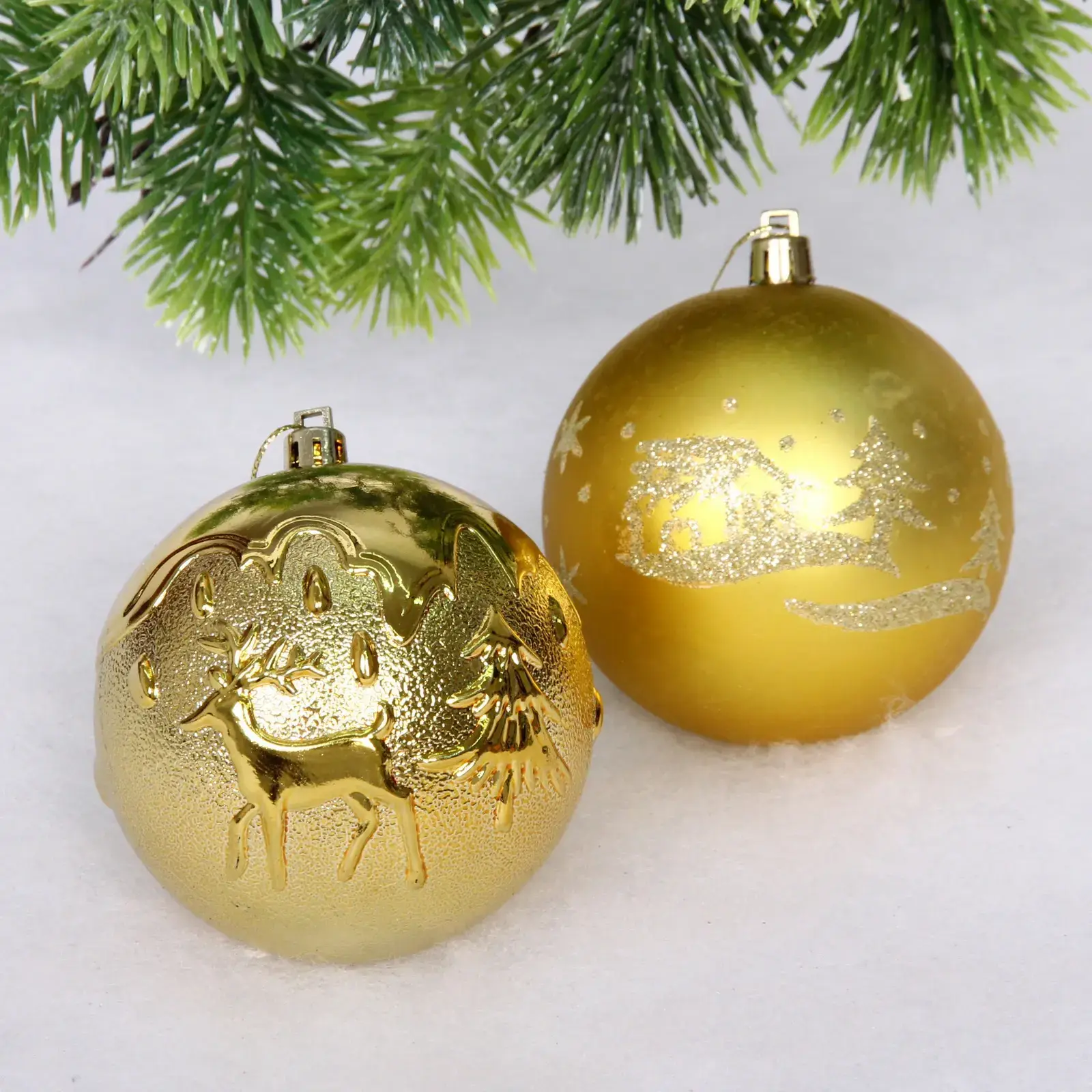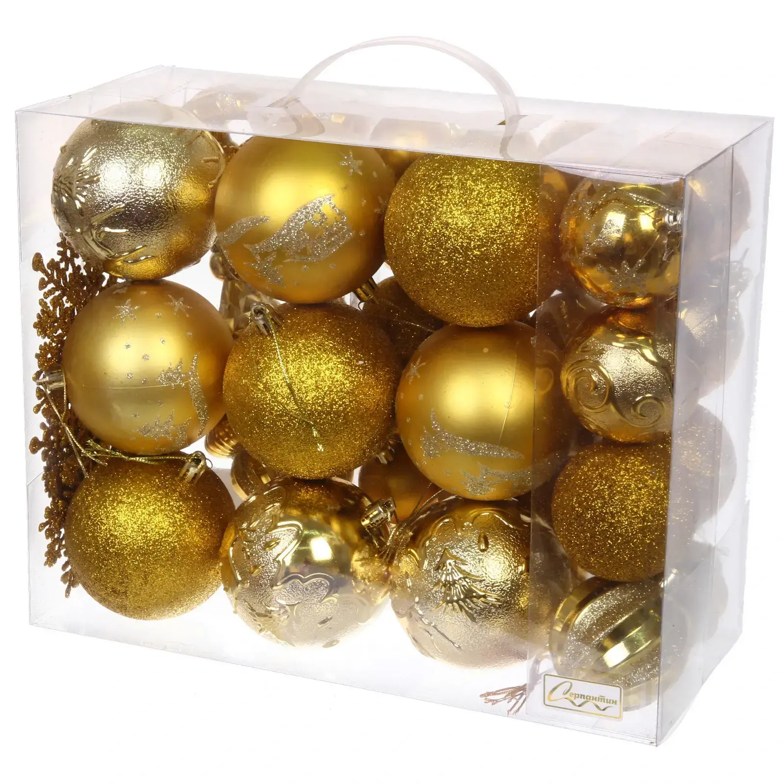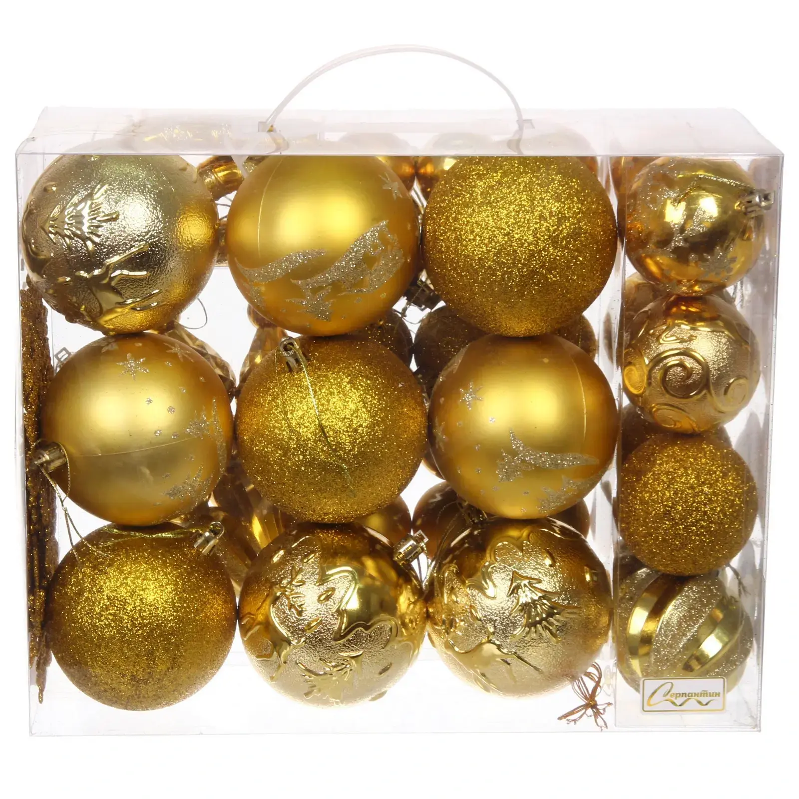 Размеры шаров варьируются от 4 см до 6 см, что делает их универсальными для любого стиля оформления. Золотые оттенки и блестящие акценты добавляют изысканности, а разнообразие форм позволяет создать уникальный декор. Набор станет отличным подарком для друзей и близких, которые ценят красоту и уют в новогодние праздники.