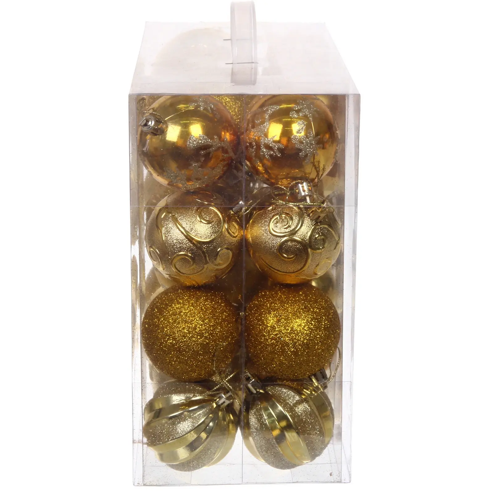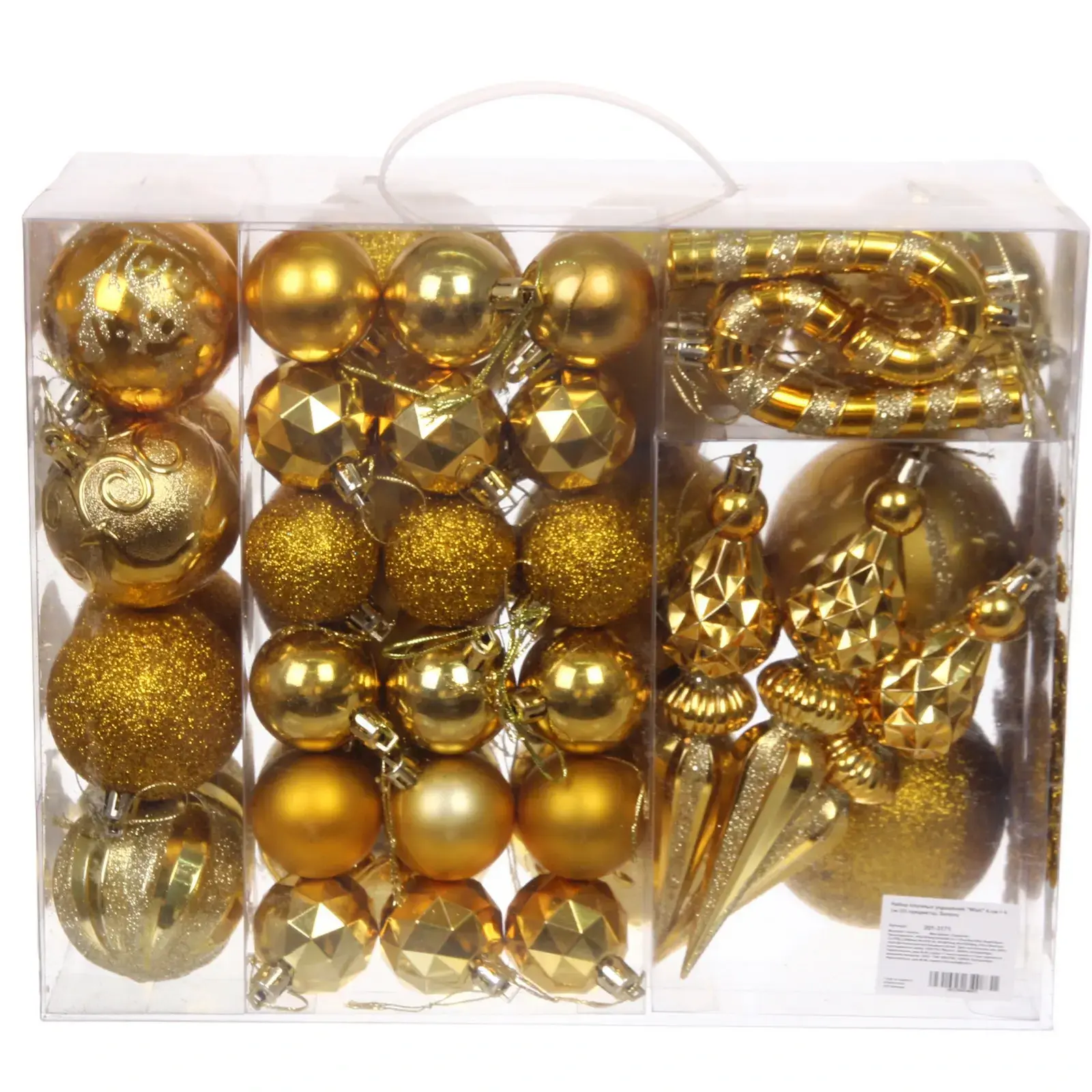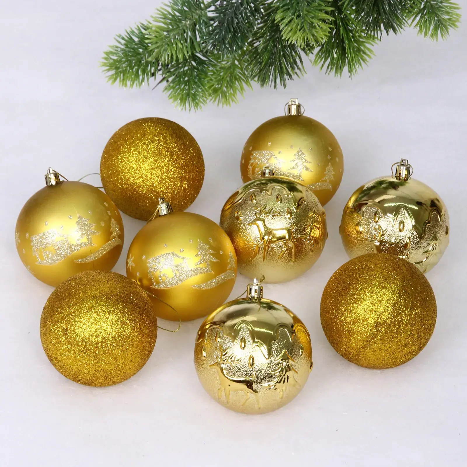 Размеры шаров варьируются от 4 см до 6 см, что делает их универсальными для любого стиля оформления. Золотые оттенки и блестящие акценты добавляют изысканности, а разнообразие форм позволяет создать уникальный декор. Набор станет отличным подарком для друзей и близких, которые ценят красоту и уют в новогодние праздники.