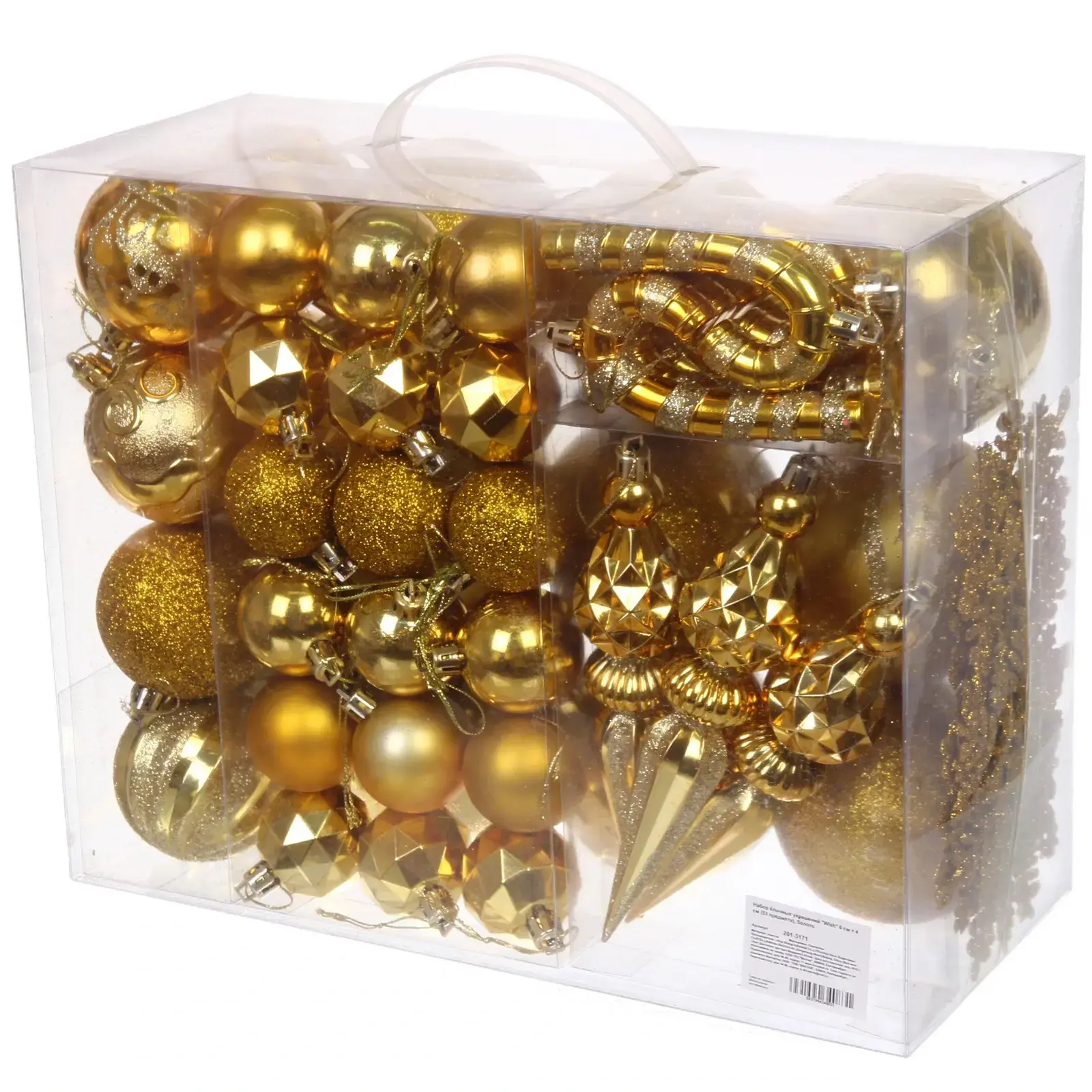 Выбирая набор ёлочных украшений «Wish», вы получаете не только красоту, но и качество. Изготовленные из прочного пластика, эти украшения устойчивы к повреждениям и прослужат вам не один сезон. Прозрачная упаковка с ручкой обеспечивает удобство хранения и транспортировки, позволяя вам легко переносить набор и хранить его до следующего праздника.