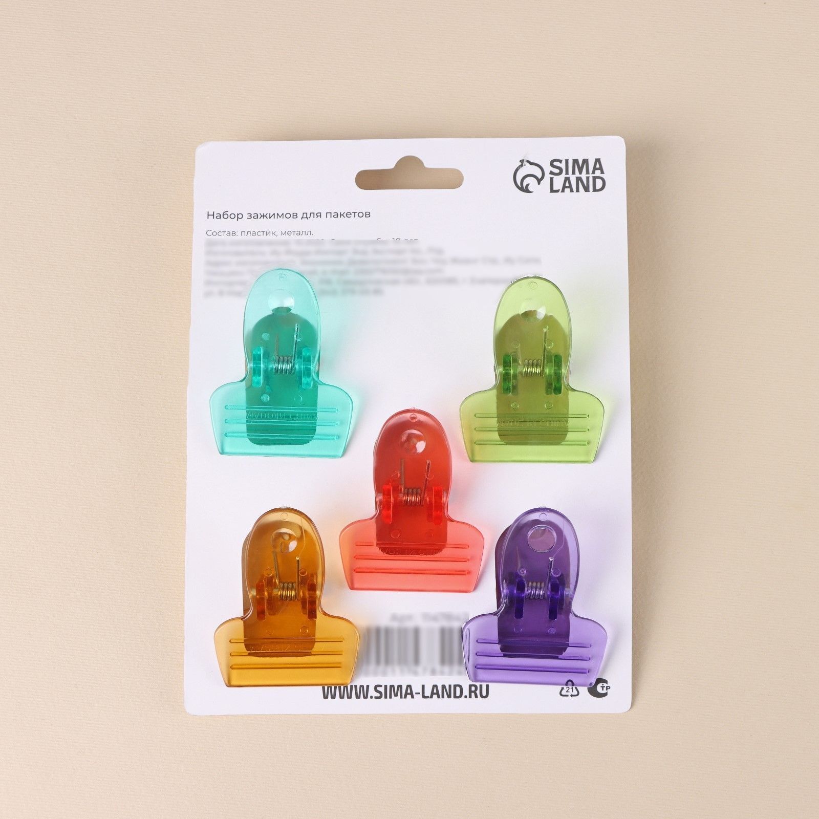 - 5 разноцветных зажимов в наборе для сортировки продуктов