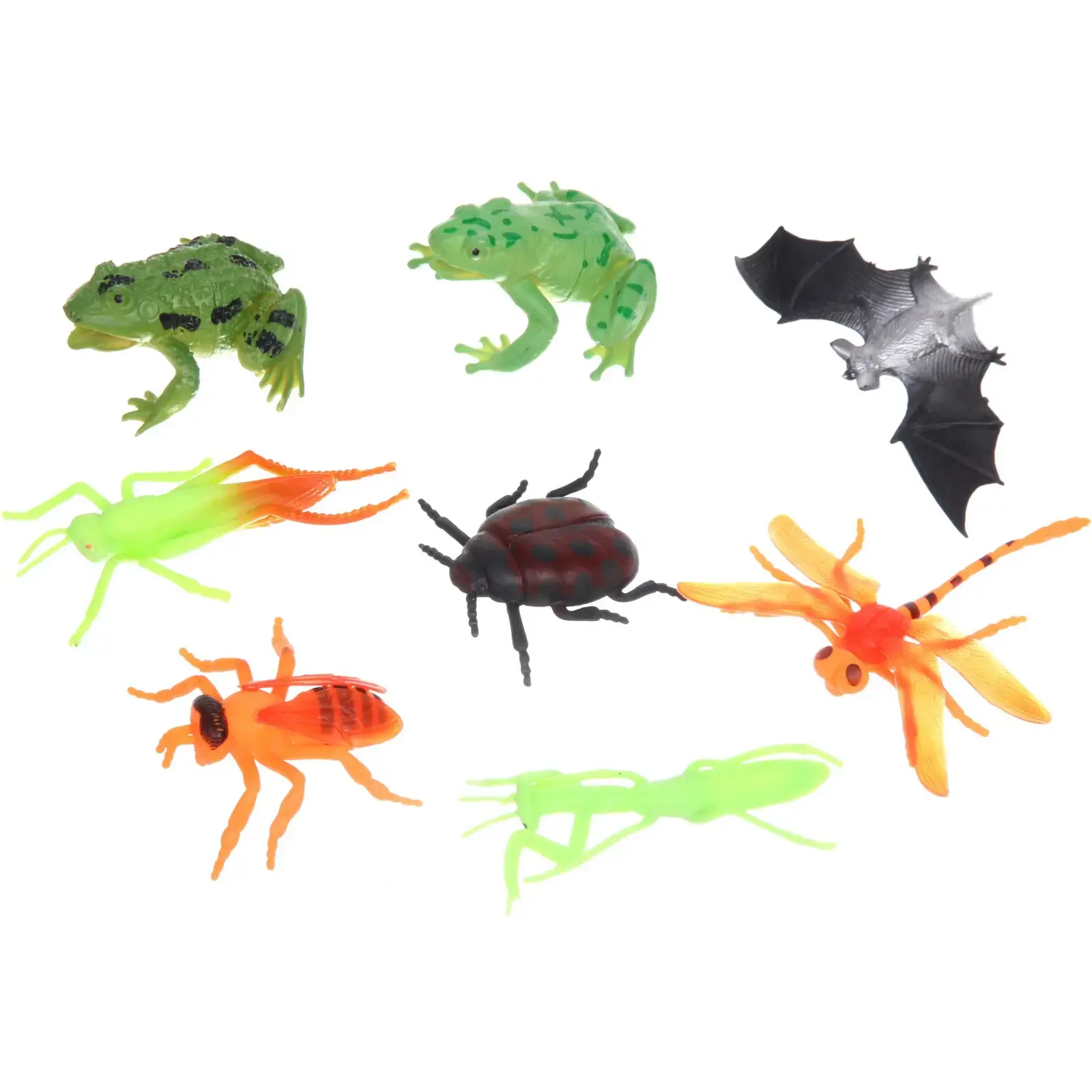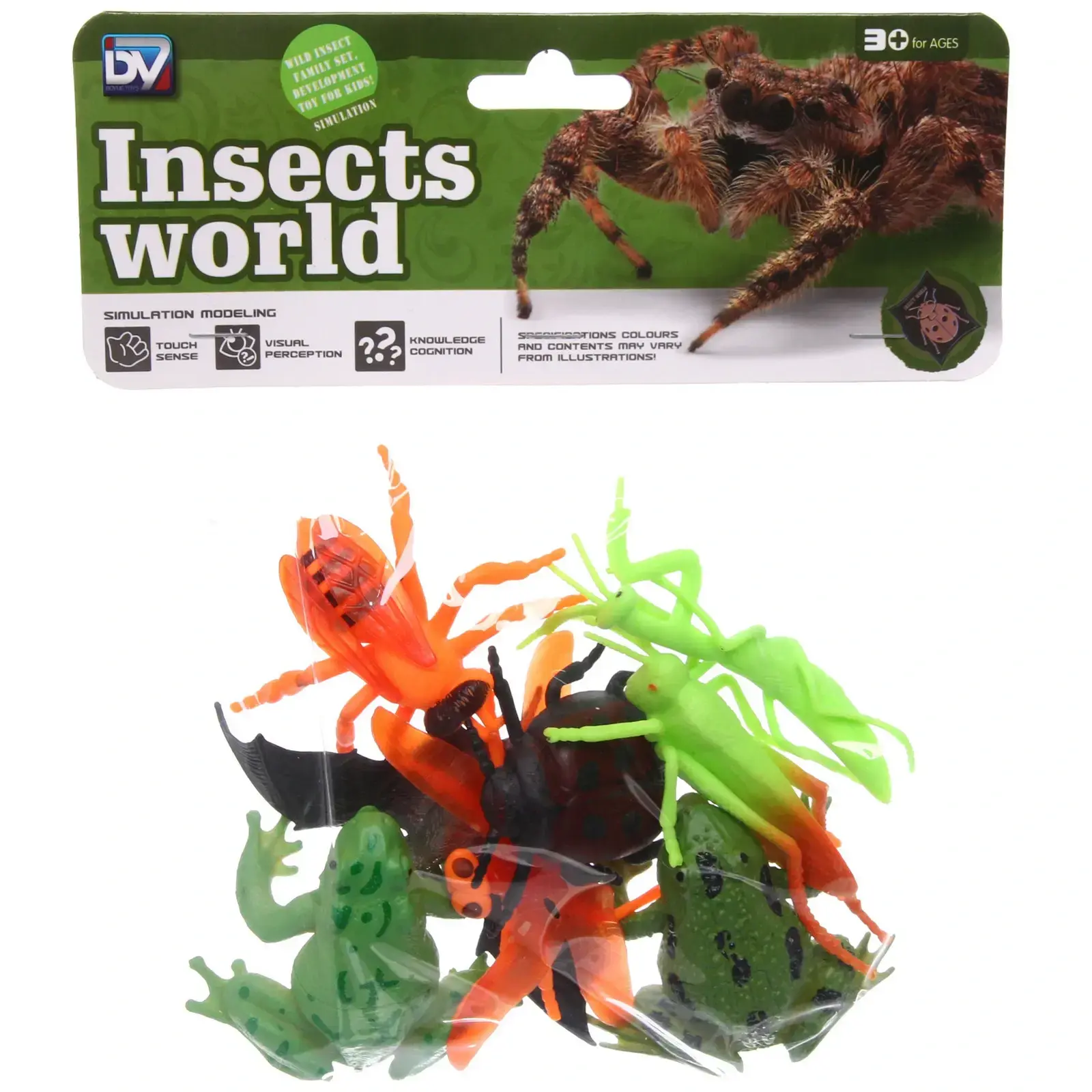 Фигурки идеально подходят для детей от 3 лет. Они могут использоваться как для игр, так и для создания уникальных декораций. Набор включает в себя две зеленые лягушки, черную летучую мышь, ярко-оранжевую муху, зеленую стрекозу, черного жука и два зеленых кузнечика. Все фигурки выполнены из безопасного пластика, что делает их легкими и удобными для маленьких ручек.