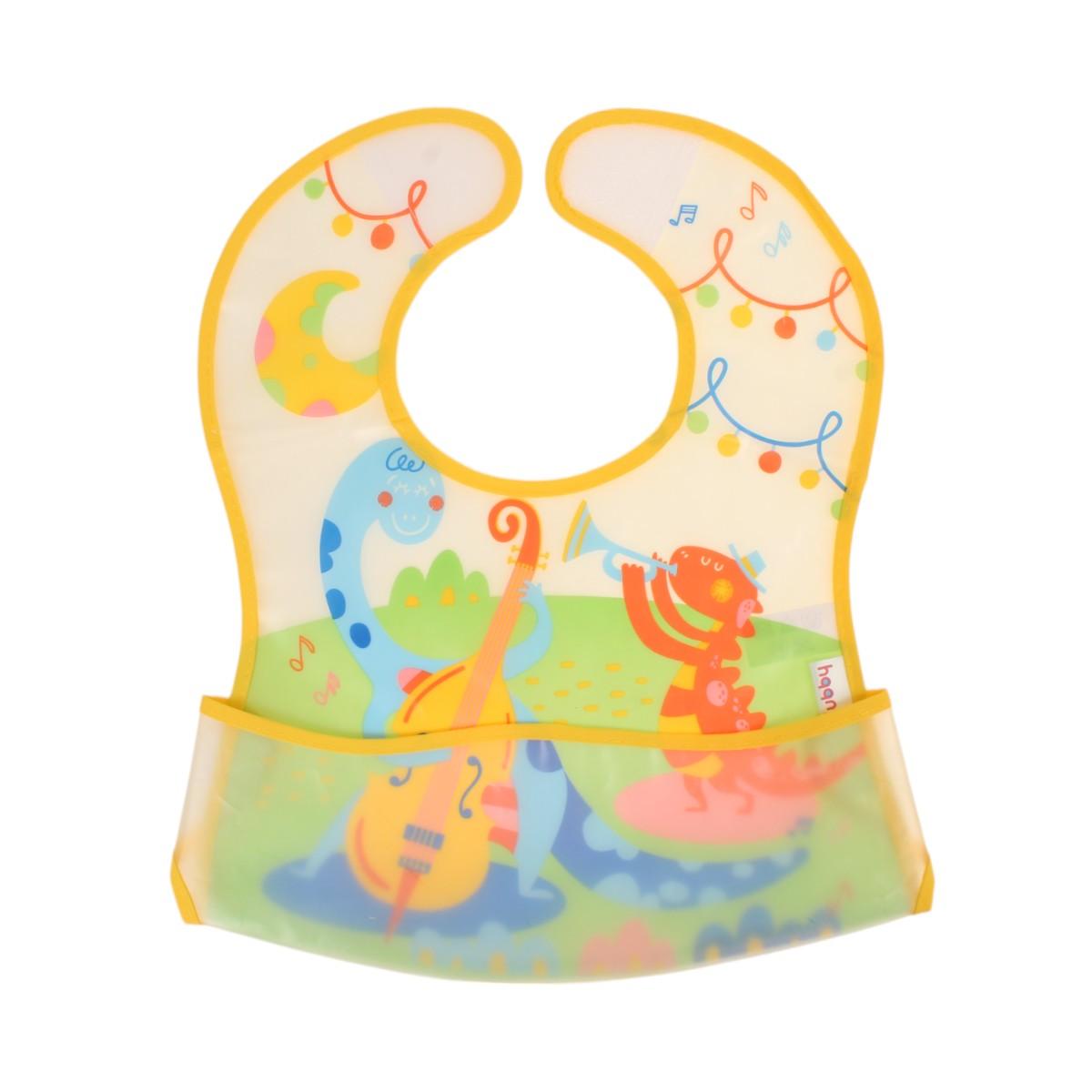 Нагрудник изготовлен из безопасных материалов (этиленвинилацетат, полиэтилен), которые легко моются и быстро сохнут. Размер изделия 30х25см идеально подходит для детей от 6 месяцев.