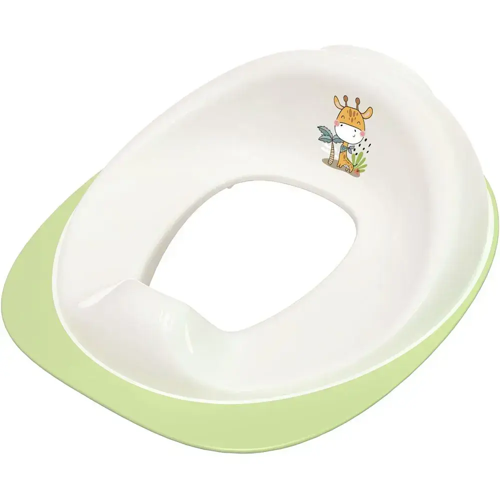 Детская накладка на унитаз Giraffix, пластик, белый с зеленым, овальная форма, рисунок жирафа