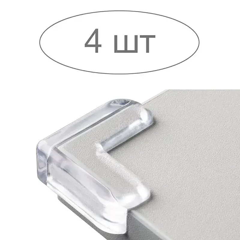 Накладки на угол прозрачные, комплект 4 шт, защита мебели, крепление на двухсторонний скотч