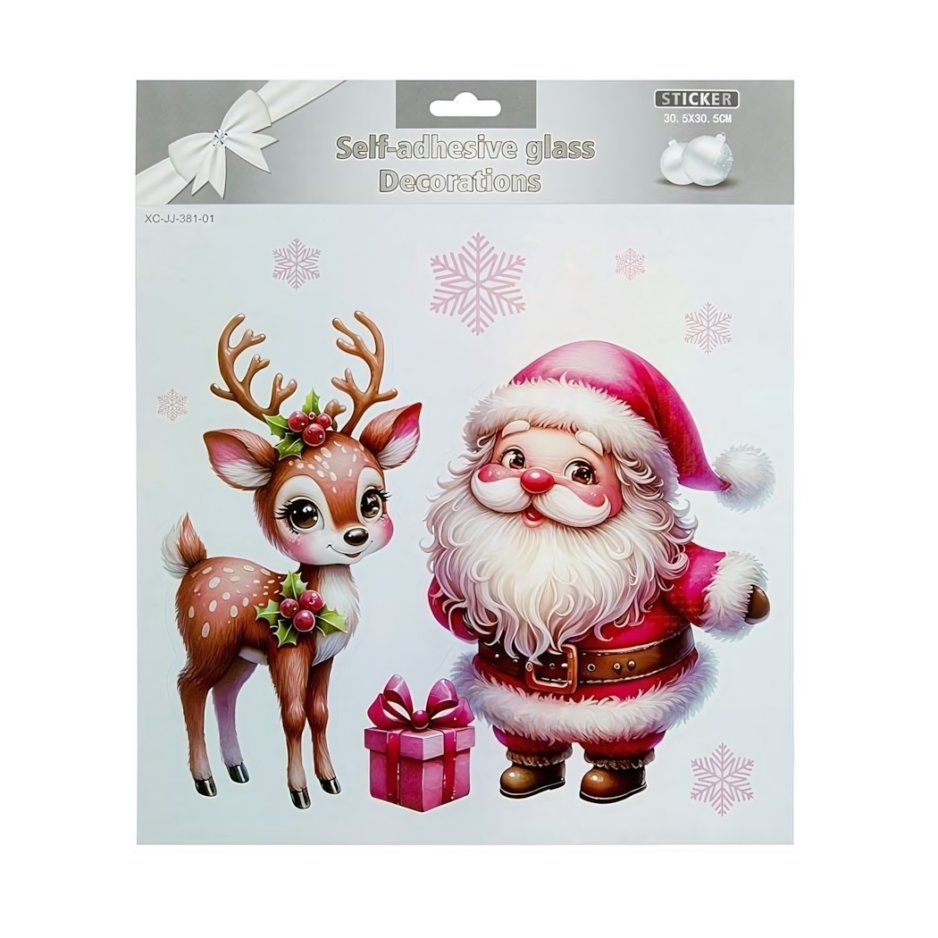Создайте атмосферу волшебства с красивыми новогодними наклейками. Яркий олень и добрый Санта-Клаус наполнят дом радостью и уютом.