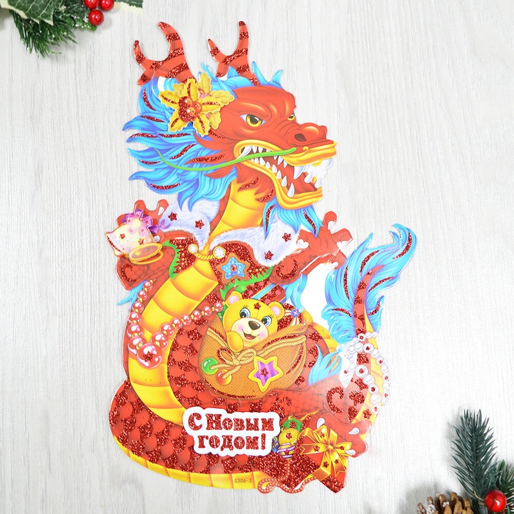 Размер наклейки составляет 14х21 см, что делает ее компактной и удобной для размещения в любом месте. Доступна в ассортименте, что позволяет выбрать наиболее подходящий вариант для вашего интерьера. Наклейка 'Дракон' станет отличным подарком для друзей и близких, добавляя радость и веселье в новогодние праздники.