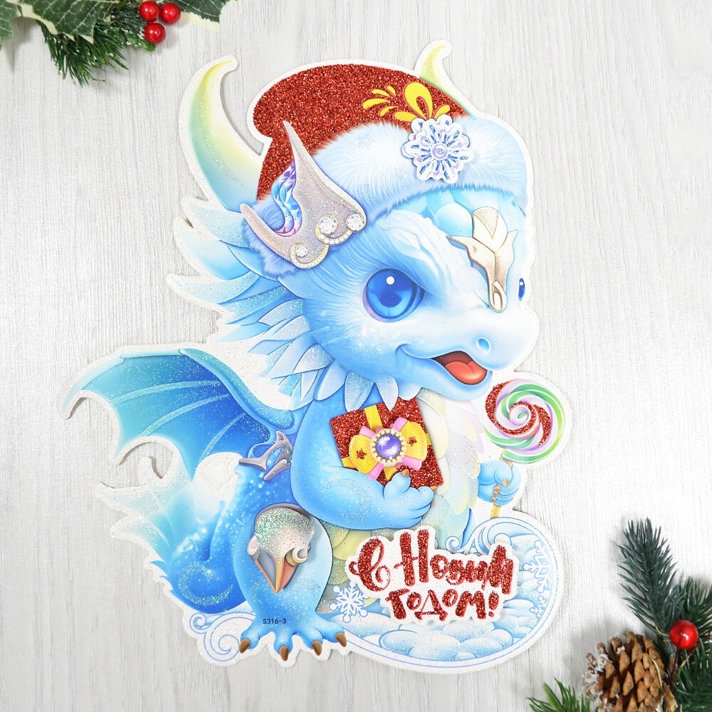 Праздничная наклейка "Дракон" станет идеальным украшением вашего дома к Новому году. Милый дракончик в светло-голубых тонах с яркими акцентами наполнит помещение атмосферой радости и веселья.