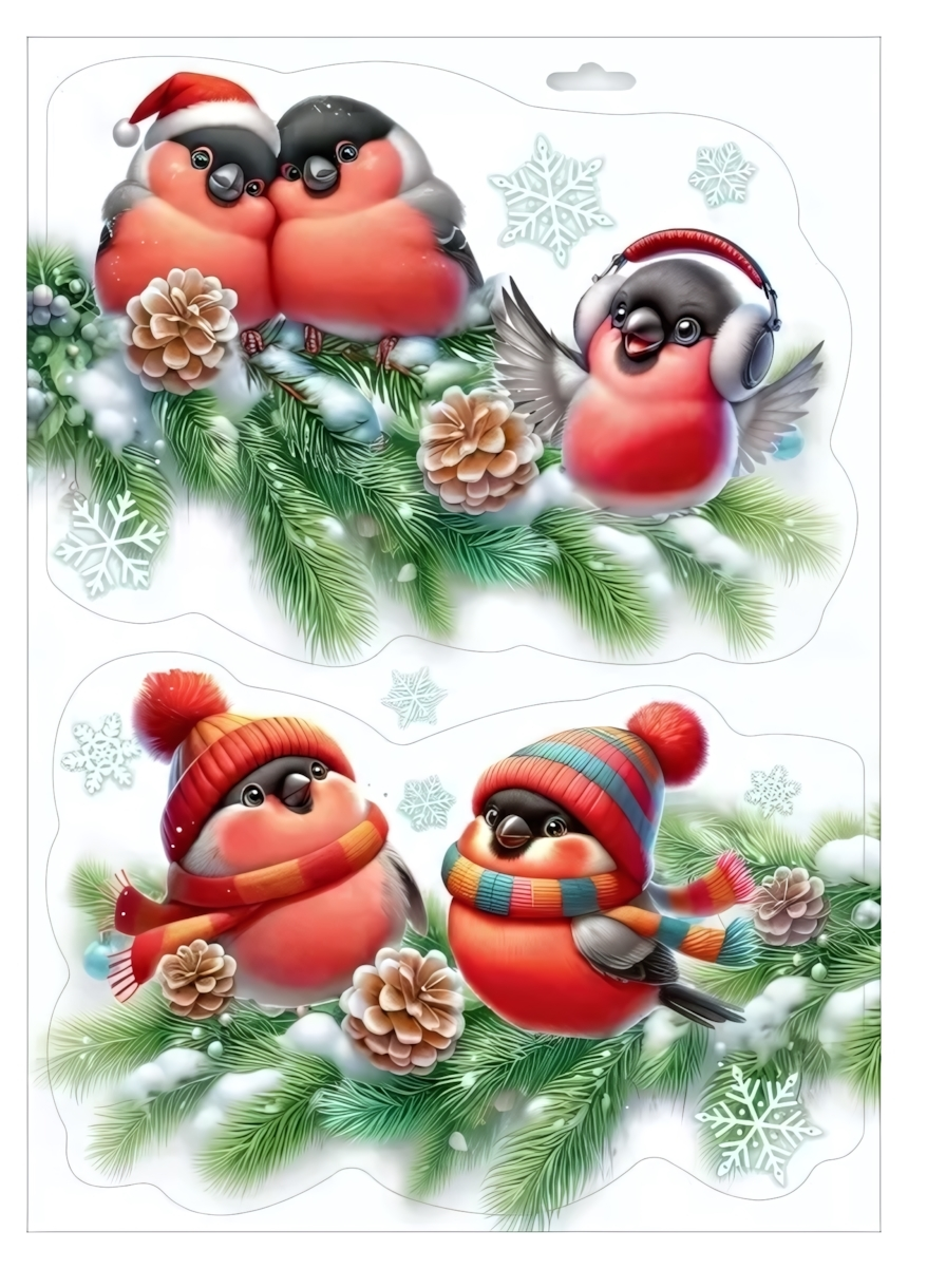Двусторонняя наклейка А4 «Снегири в шапочках»
