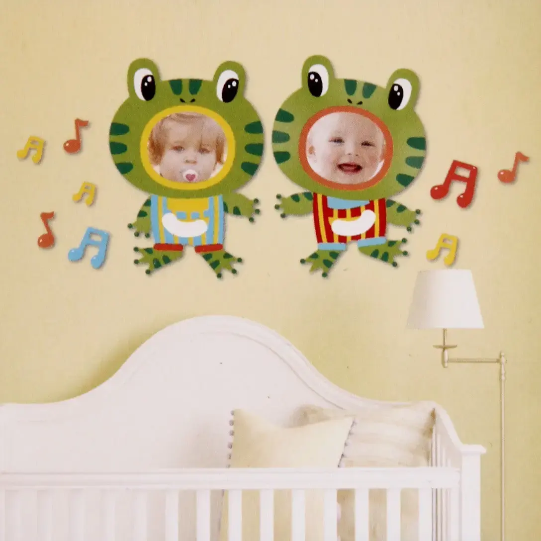Внесите в интерьер яркие живые акценты с нашей наклейкой‑фоторамкой, выполненной в виде мультяшной лягушки. Удобный формат 30×50 см позволяет разместить двух‑дневных снимков и при этом выглядит как живое украшение стены.