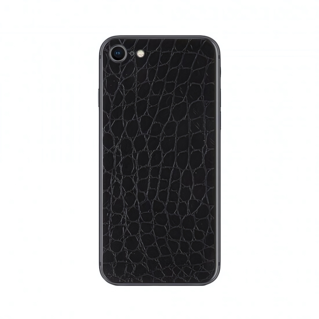 Наклейка имеет черный цвет и текстуру, напоминающую кожу рептилий, что придает вашему телефону стильный и современный вид. Она подходит для моделей iPhone 7, iPhone 8 и iPhone SE (2020). Каждая наклейка поставляется в фирменной упаковке с тряпочкой для протирки, что делает ее отличным подарком для друзей и близких.