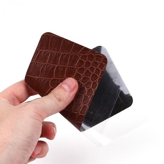 Наклейка имеет коричневый цвет и текстуру, имитирующую кожу, что делает ее универсальной для любого стиля. Она идеально подходит для моделей iPhone 7 Plus и iPhone 8 Plus. Размер наклейки точно соответствует задней панели телефона, что обеспечивает идеальную посадку и защиту.