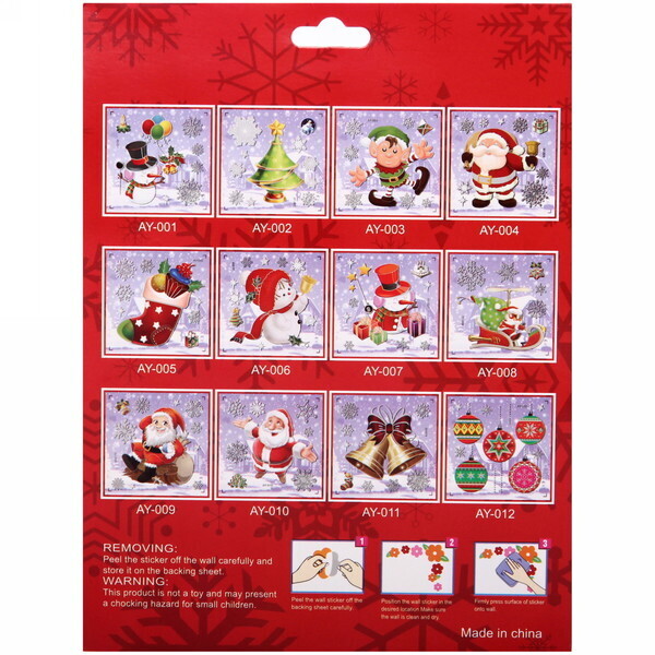 Размер подложки с наклейками — 17x16 см. Материал — пвх с сияющей текстурой. В наборе — одна наклейка с рисунками на новогоднюю тематику. Идеально подходит для сезонного декора дома, детской комнаты, витрины магазина, офиса или празднования в детском саду. Украсьте свой зимний праздник с легкостью!