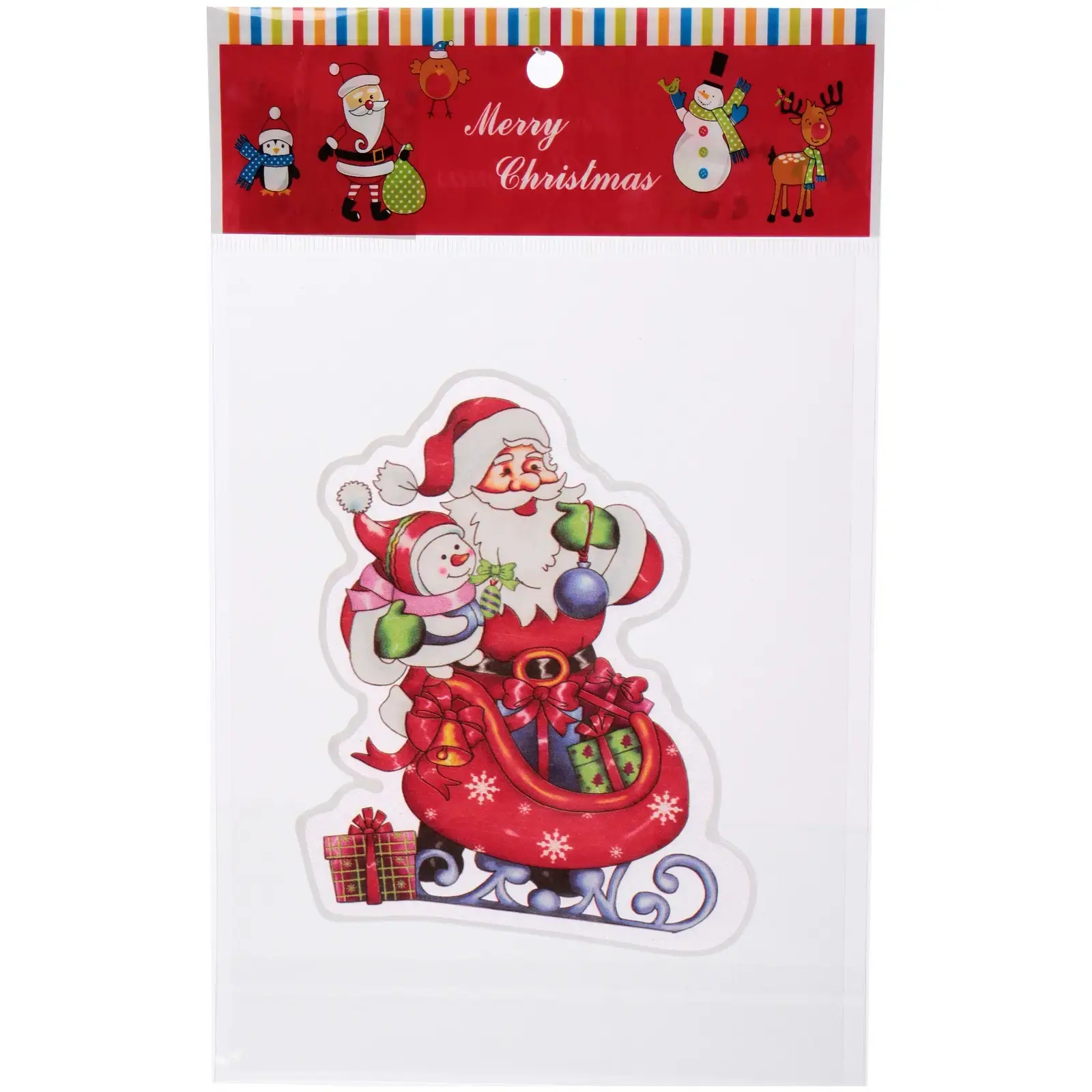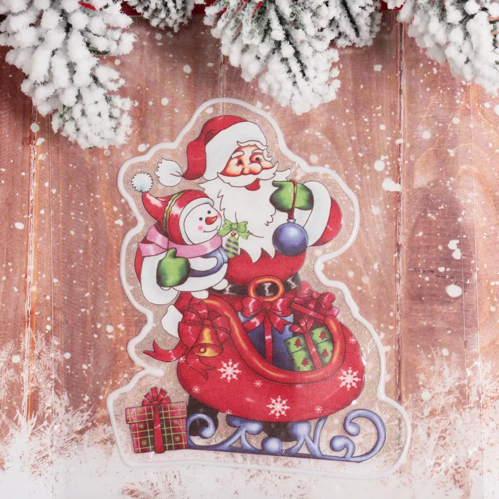 Эта яркая наклейка на стекло станет отличным украшением вашего дома в Новый Год. Она выполнена из качественного ПВХ, что обеспечивает долговечность и яркость цветов. Наклейка изображает Деда Мороза и снеговика, сидящих в красных санях, что добавляет волшебства и радости в ваш интерьер.