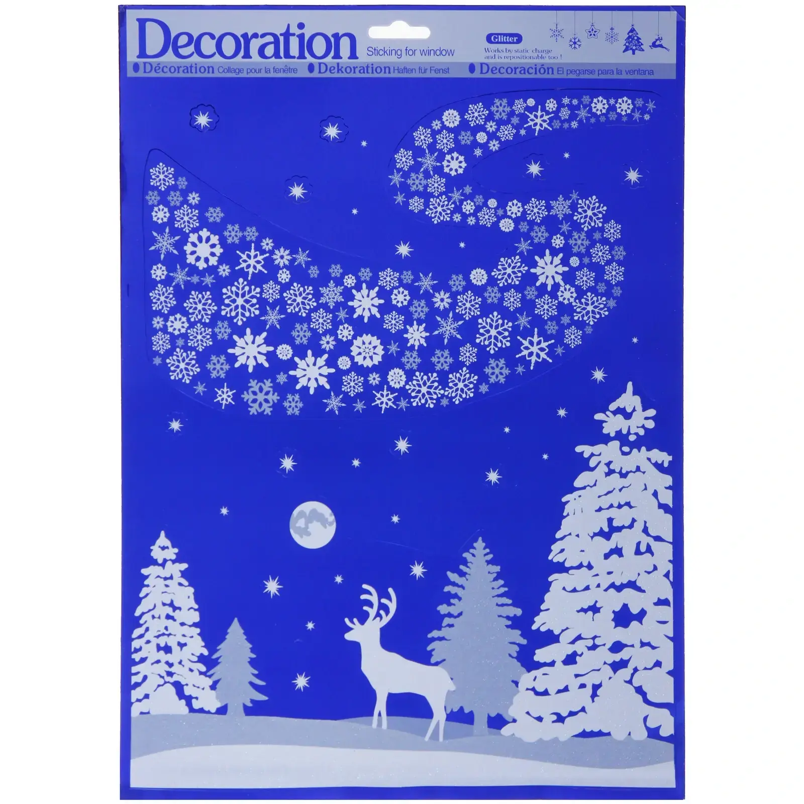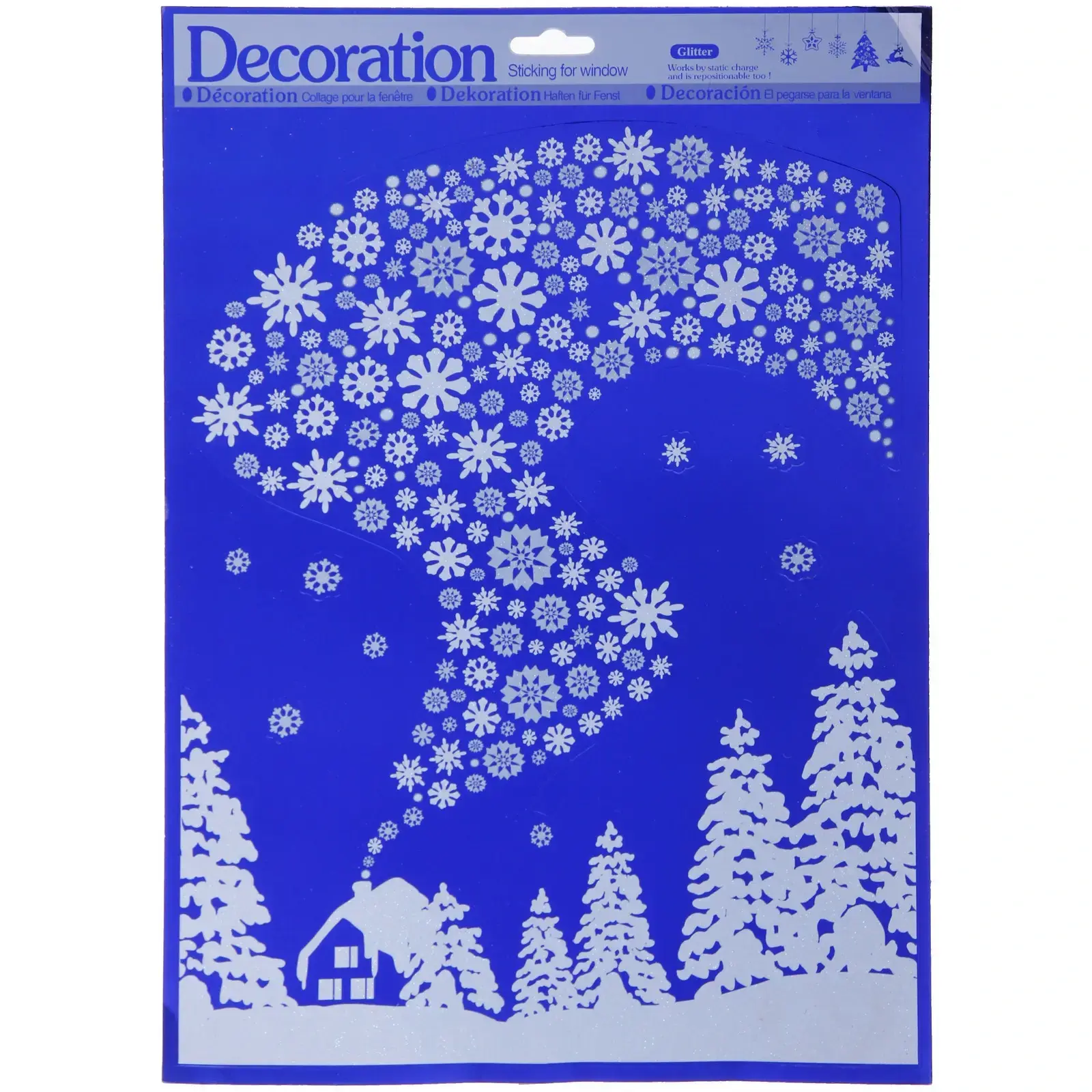Наклейка на окно «Морозы» 38x30 см, ПВХ, зимний декор: снежинки, домики, олени