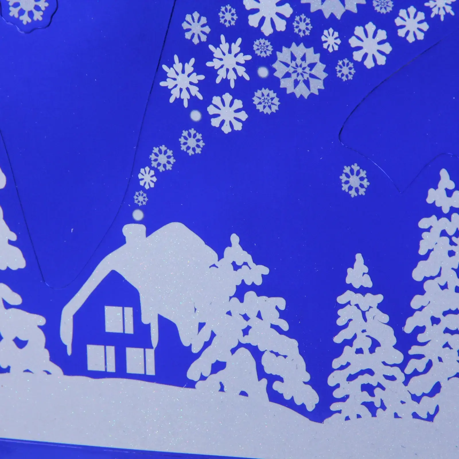 Размер каждого листа 38x30 см позволяет создавать как акцентные элементы, так и полноценные зимние панно. Благодаря полупрозрачной основе рисунки эффектно смотрятся при вечерней подсветке, создавая проекцию узоров на стены.