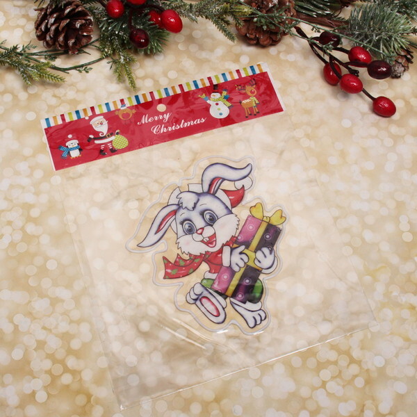 Создайте атмосферу праздника с наклейкой на стекло «Радостный кролик»! Эта яркая и веселая наклейка станет отличным украшением для вашего дома в Новый Год и Рождество. Она выполнена из качественного ПВХ, что обеспечивает долговечность и легкость в использовании. Наклейка изображает милого белого кролика с голубыми глазами, который держит цветной музыкальный инструмент и окружен праздничными элементами, такими как снеговик и Дед Мороз.