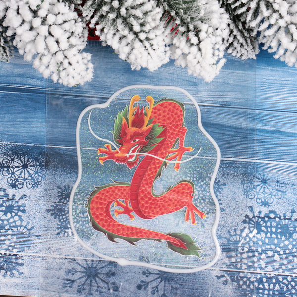 Создайте атмосферу настоящего зимнего волшебства с наклейкой на стекло «Сила огня». Яркое изображение дракона в красных и зелёных тонах привлекает внимание и сразу задаёт настроение праздника. Такая наклейка не только украшает ваш интерьер, но и добавляет отпечаток уюта и оригинальности.