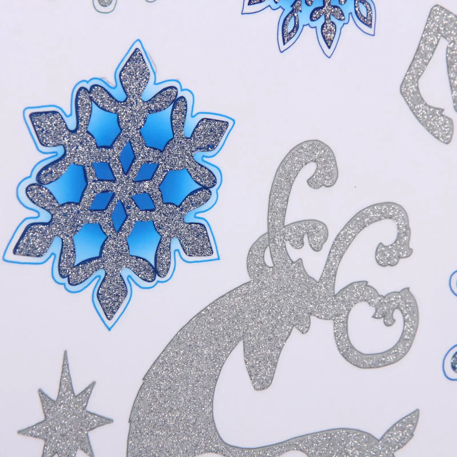 Подходит для украшения окон, зеркал, стеклянных дверей. Специальный материал позволяет многократно использовать наклейки.