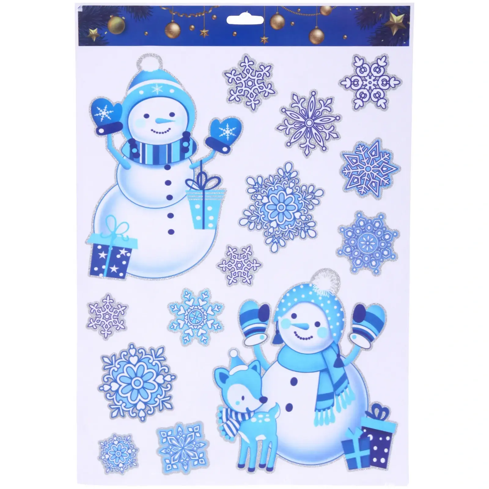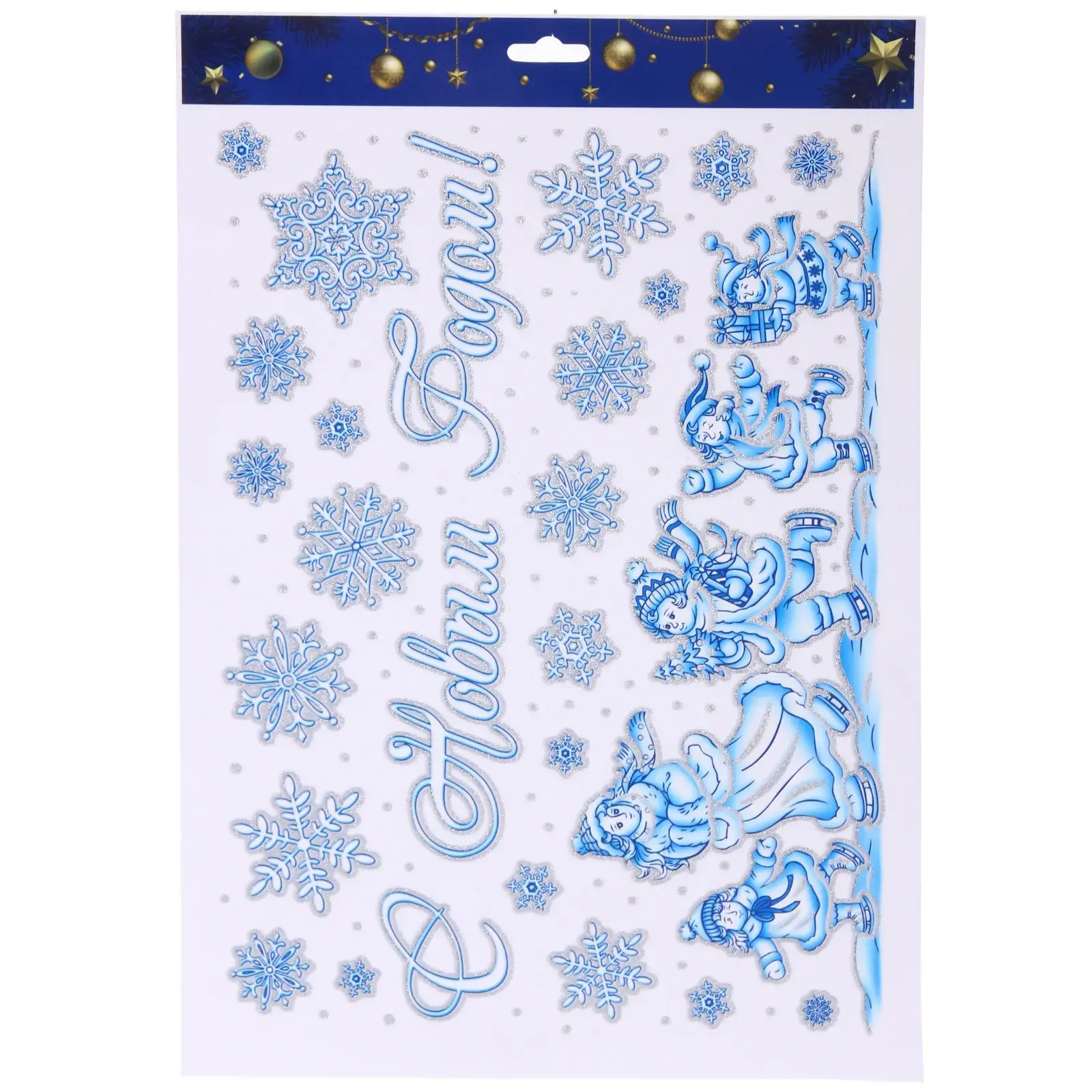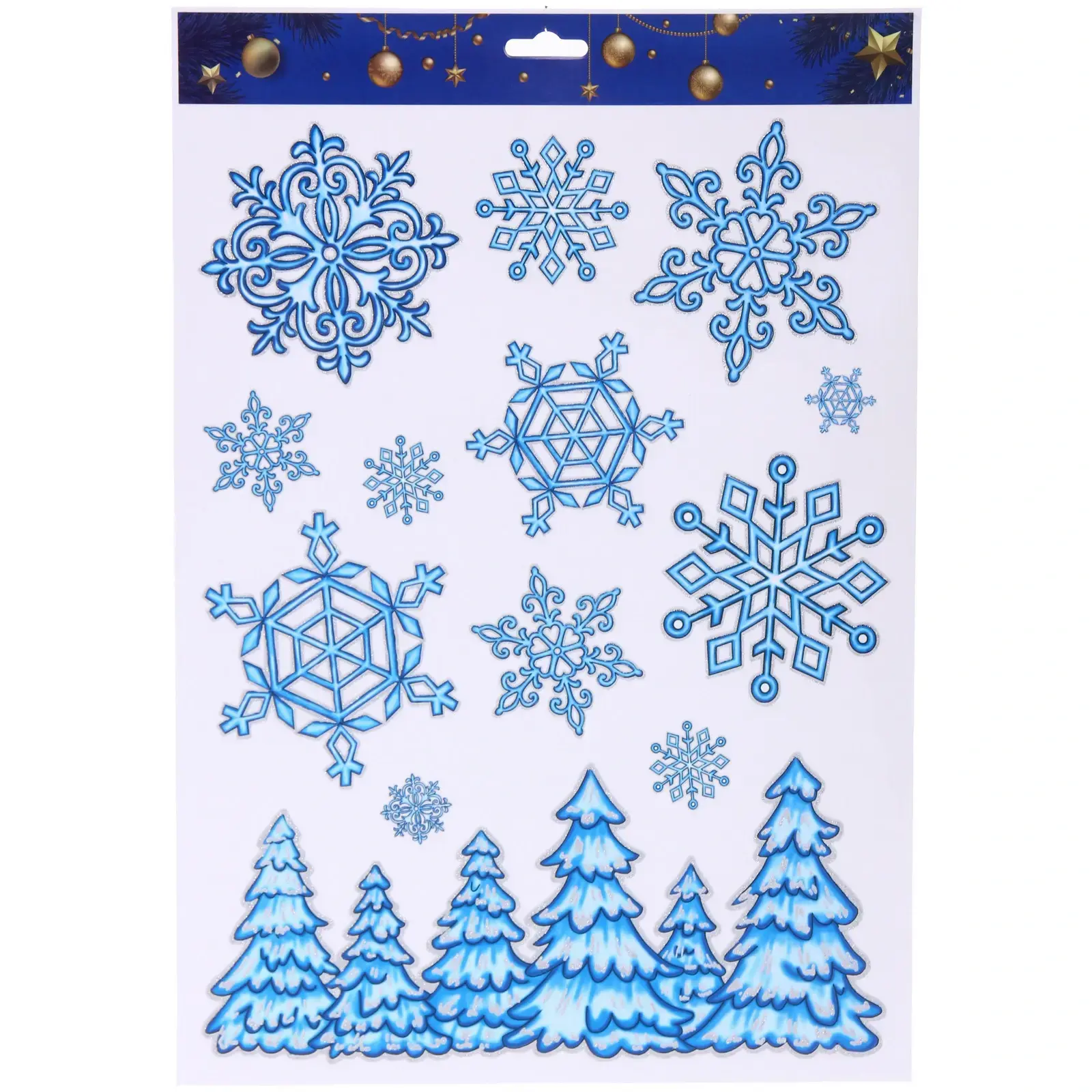 Наклейки на стекло 'Волшебная зима', 41х19см, пвх, синий/серебро