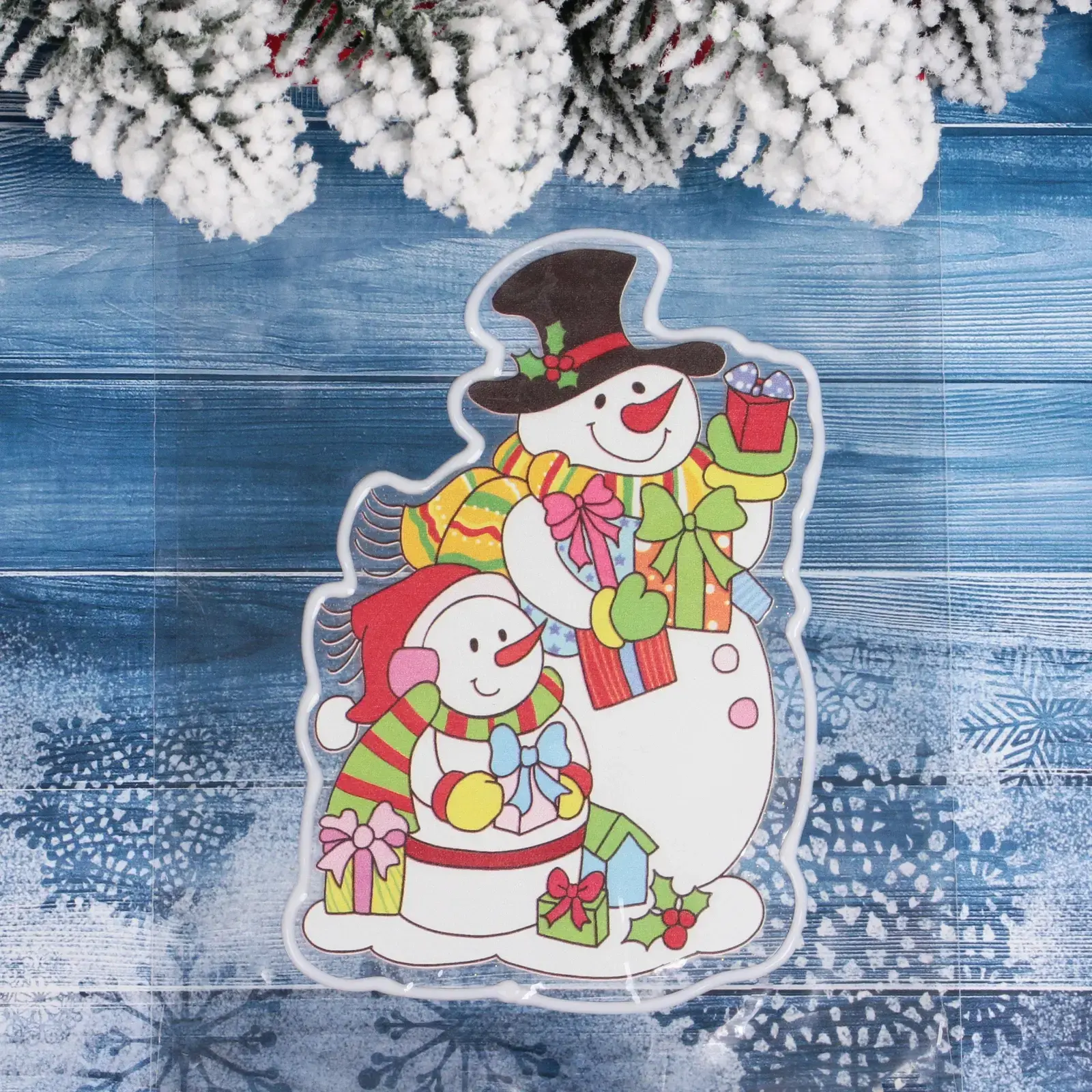 Эта яркая наклейка на стекло станет отличным дополнением к вашему новогоднему декору. С изображением двух дружелюбных снеговиков, один из которых держит подарки, она привнесет атмосферу радости и уюта в ваш дом. Наклейка выполнена из качественного ПВХ, что обеспечивает ее долговечность и легкость в использовании.
