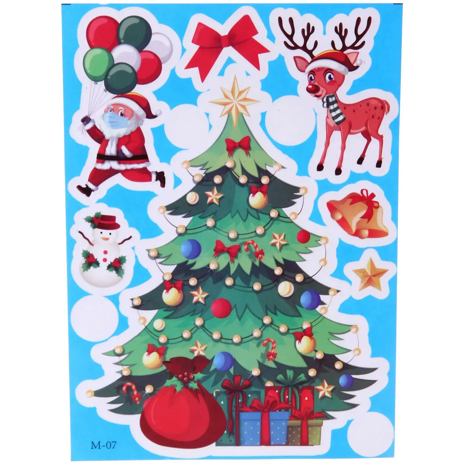Наклейка предназначена для украшения окон, дверей и других стеклянных поверхностей. Она отлично подходит для создания новогоднего настроения в доме, офисе или на мероприятиях. Яркие цвета и разнообразные изображения, такие как Санта-Клаус, снеговик и олень, привлекут внимание и порадуют детей и взрослых.