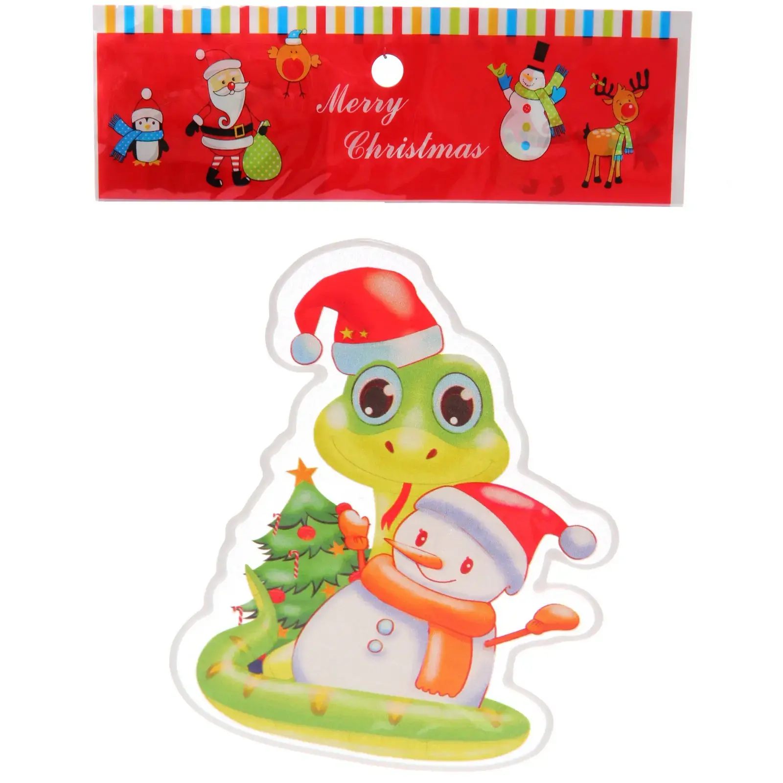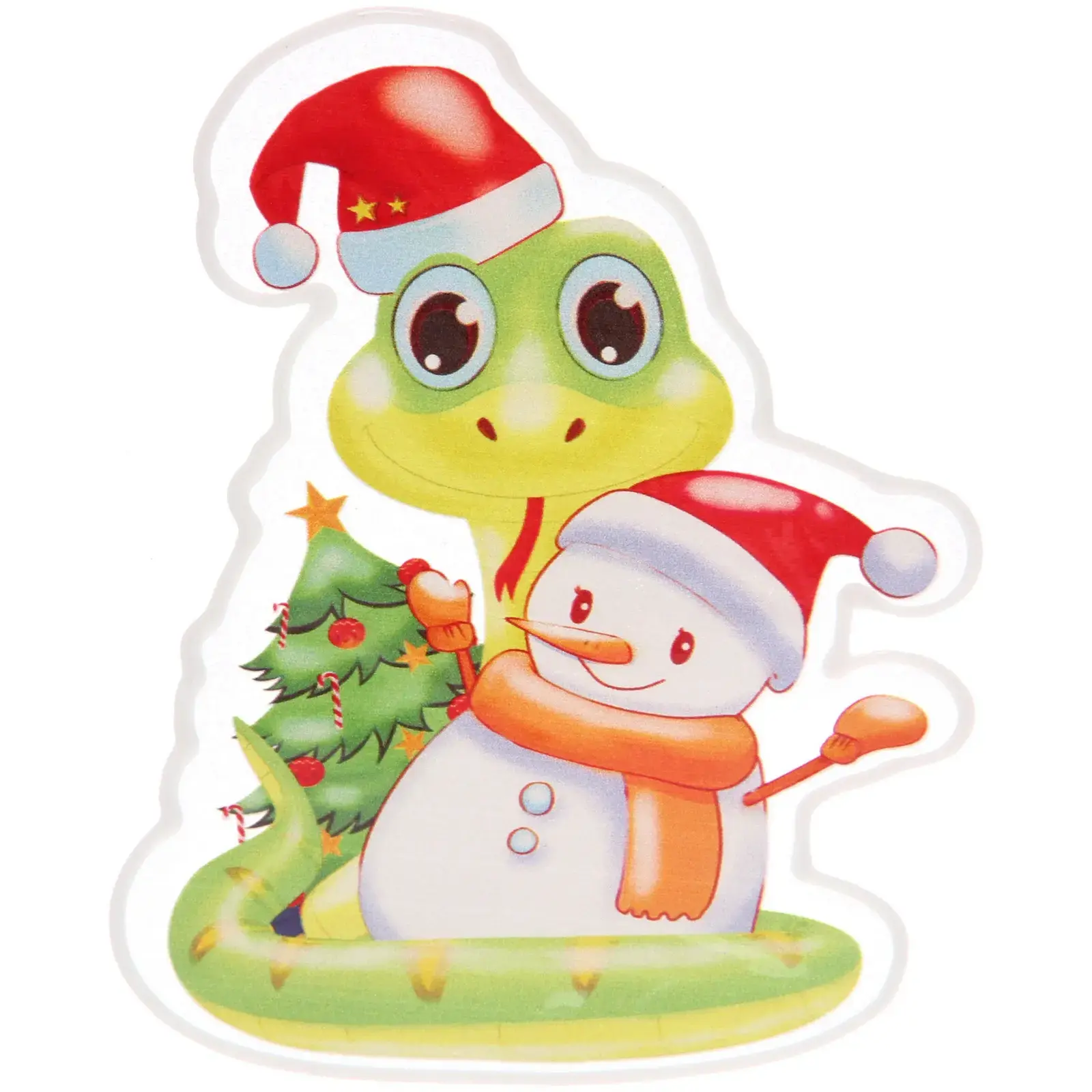 Наклейка на стекло 'Змея и снеговик' 15х20 см, яркий декор для праздника
