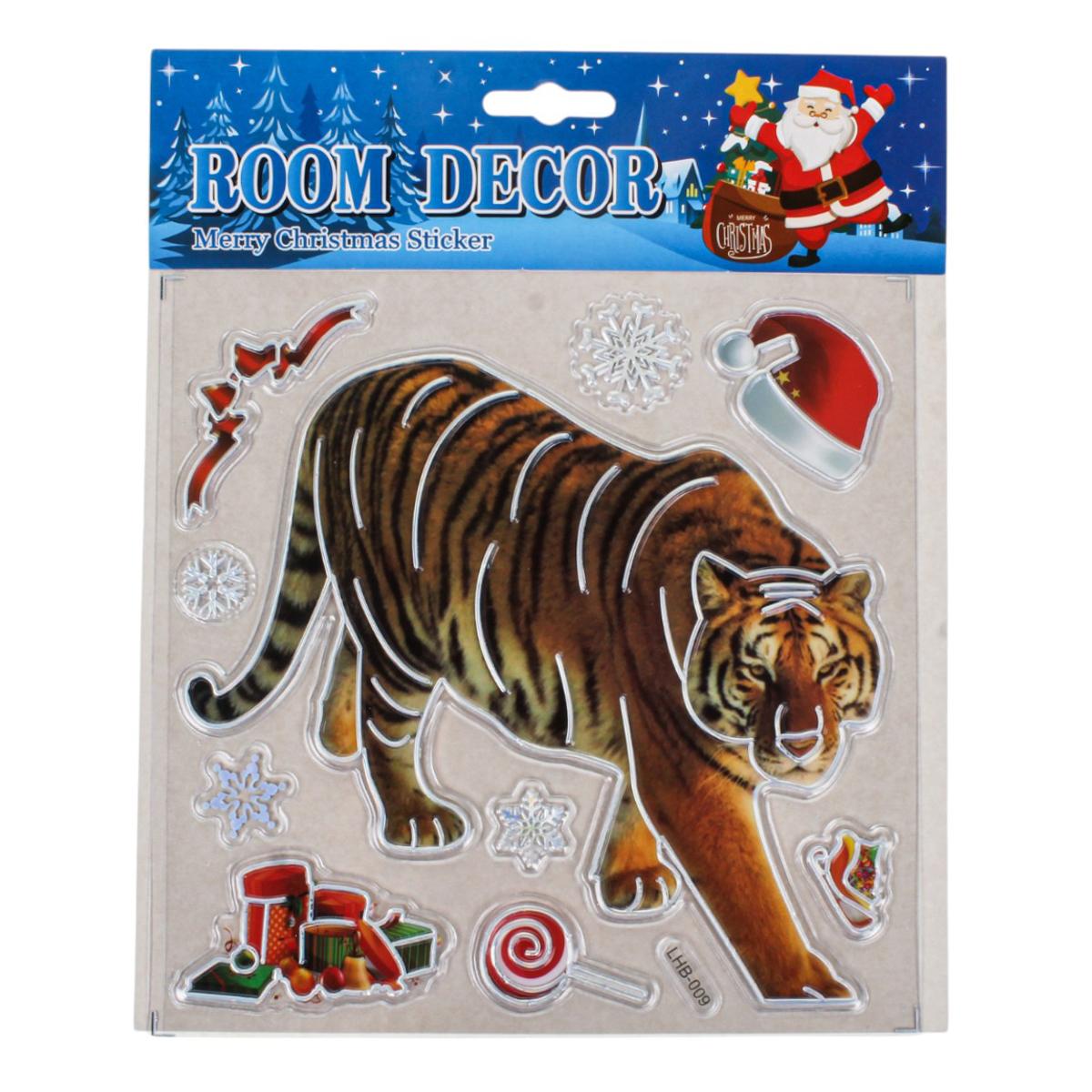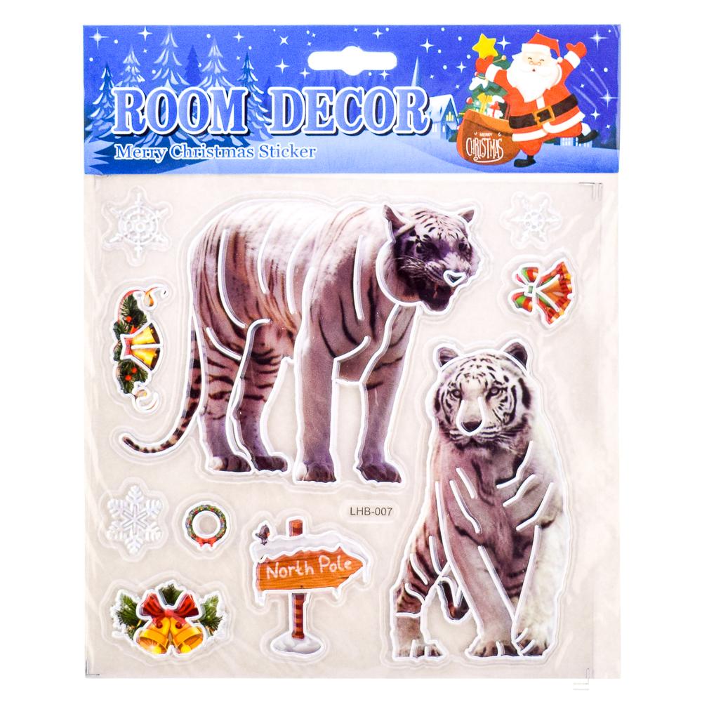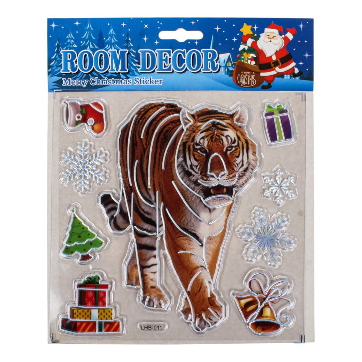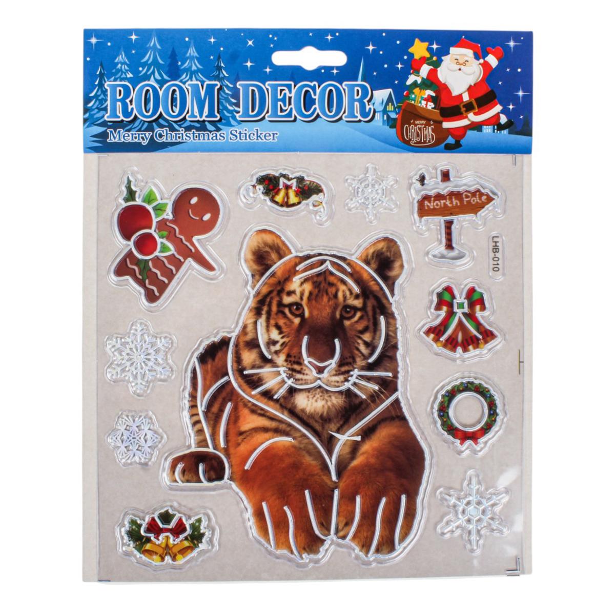 Создайте тёплую праздничную атмосферу в своём доме с помощью новогодней наклейки размером 18x22 см. Она станет эффектным акцентом на окне, зеркале, мебели или дверце шкафа, мгновенно добавив интерьеру зимнего волшебства. Дизайн выполнен в ярких насыщенных цветах и включает узнаваемые образы Нового года и Рождества: тигров, снежинки, колокольчики, венок и другие праздничные элементы.