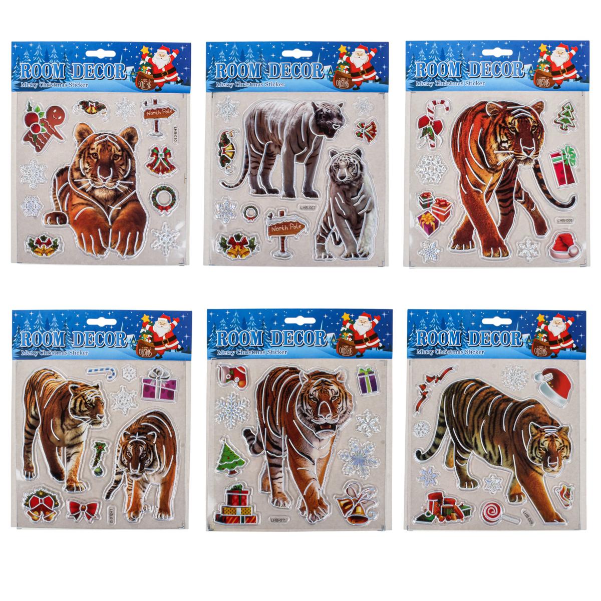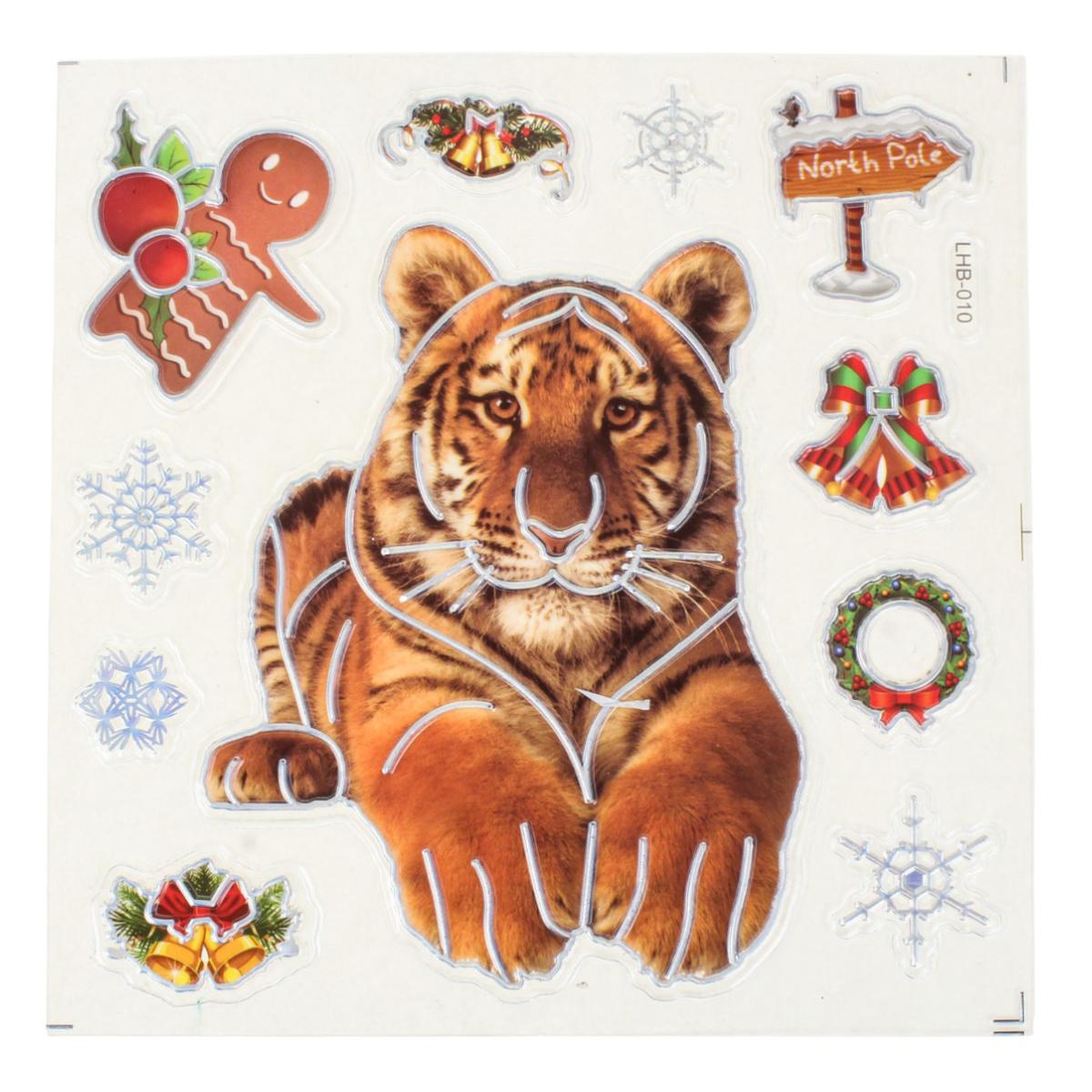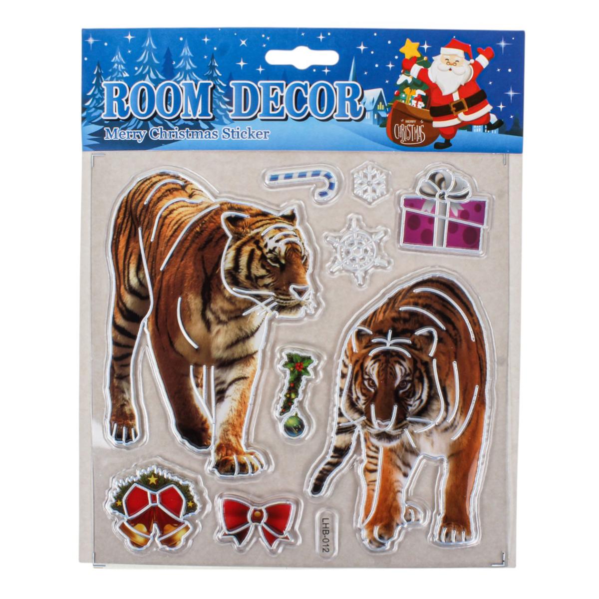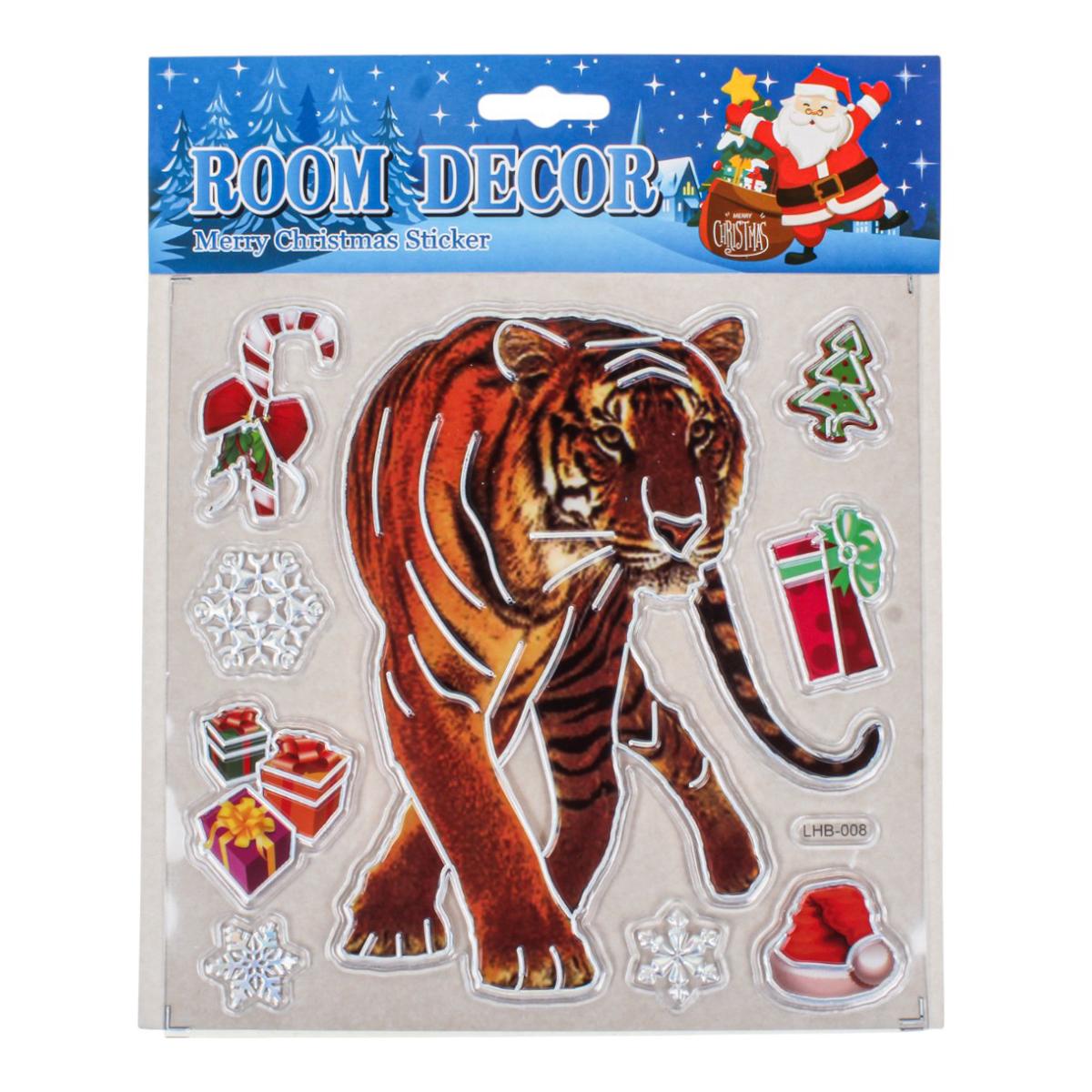 Создайте тёплую праздничную атмосферу в своём доме с помощью новогодней наклейки размером 18x22 см. Она станет эффектным акцентом на окне, зеркале, мебели или дверце шкафа, мгновенно добавив интерьеру зимнего волшебства. Дизайн выполнен в ярких насыщенных цветах и включает узнаваемые образы Нового года и Рождества: тигров, снежинки, колокольчики, венок и другие праздничные элементы.