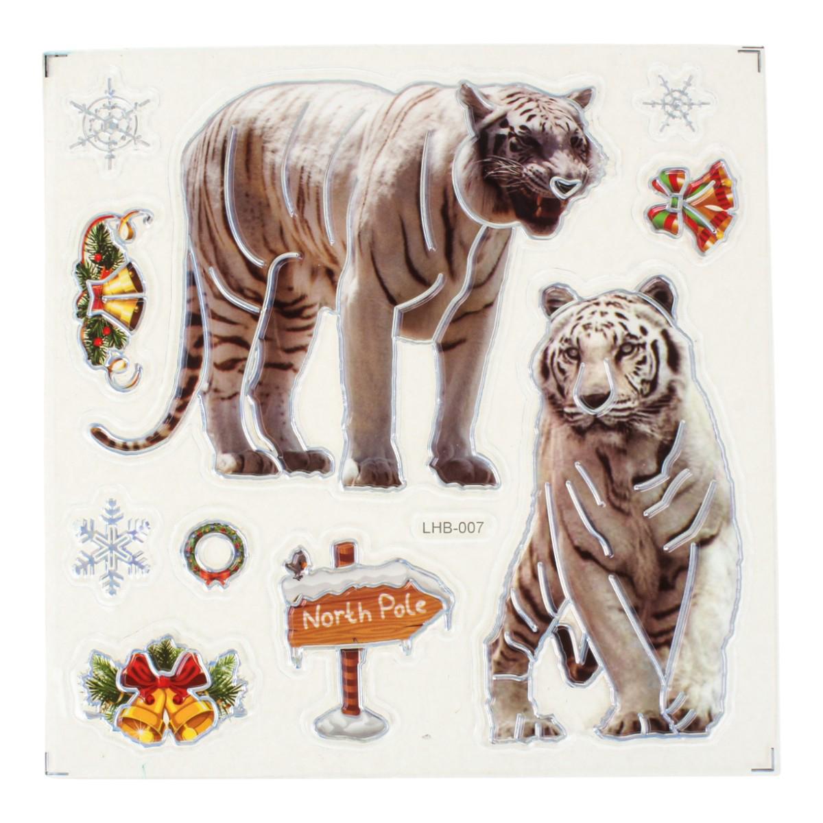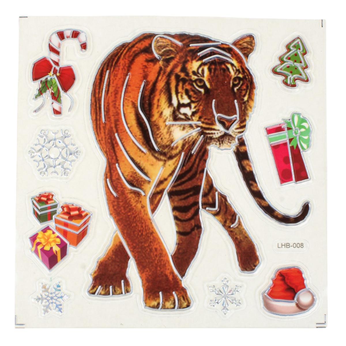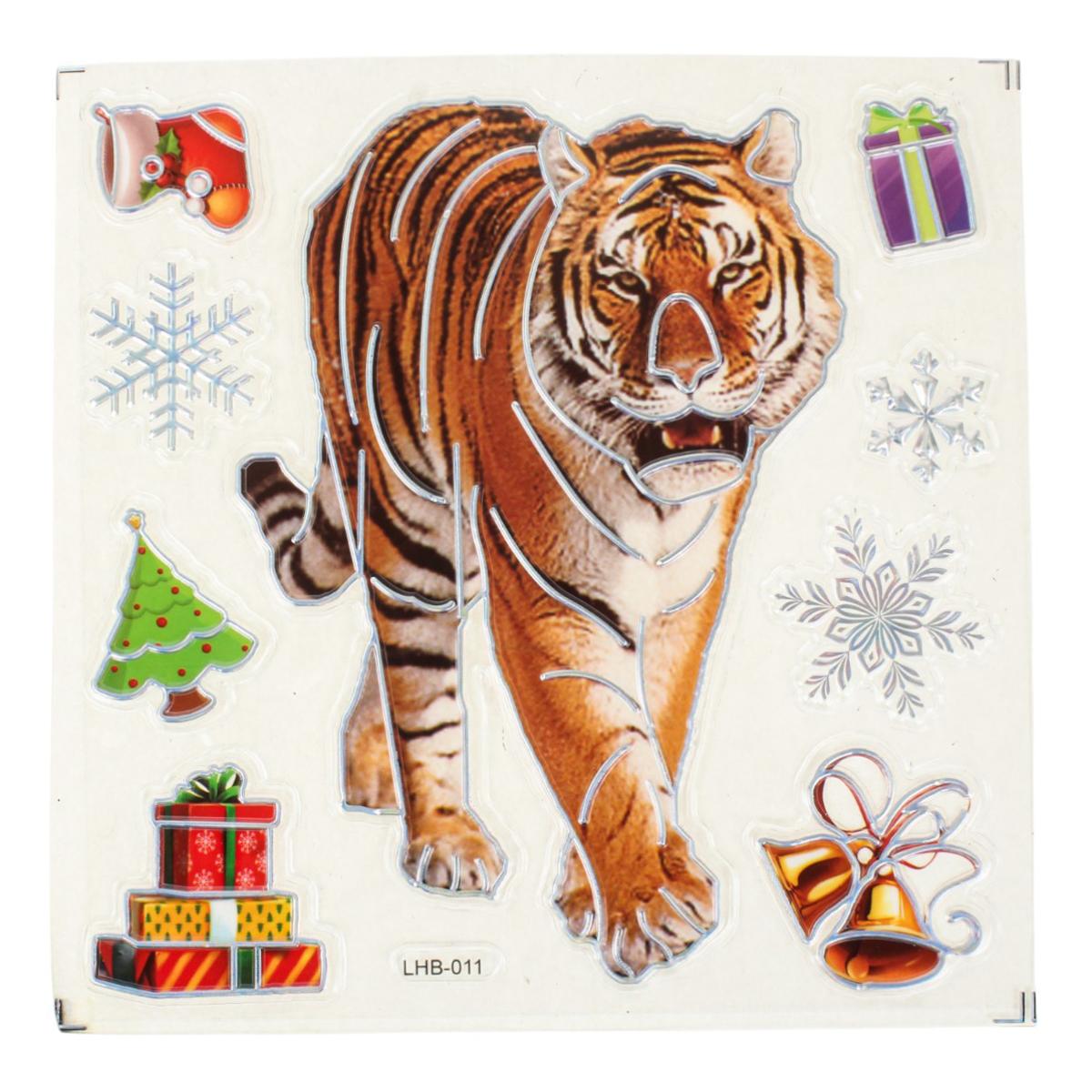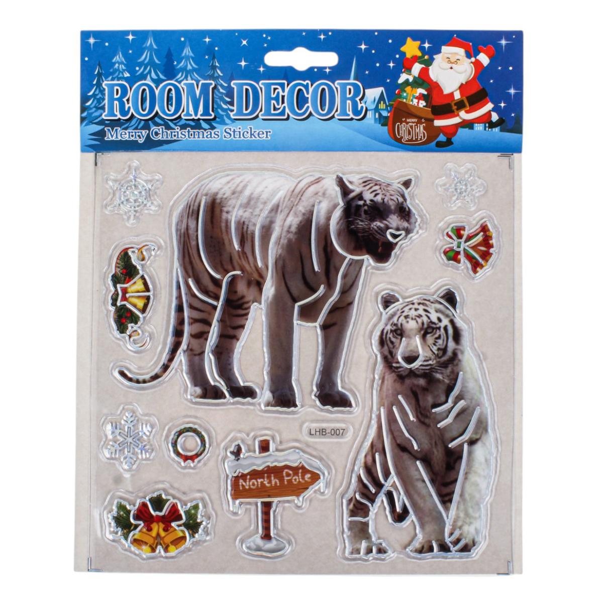 Создайте тёплую праздничную атмосферу в своём доме с помощью новогодней наклейки размером 18x22 см. Она станет эффектным акцентом на окне, зеркале, мебели или дверце шкафа, мгновенно добавив интерьеру зимнего волшебства. Дизайн выполнен в ярких насыщенных цветах и включает узнаваемые образы Нового года и Рождества: тигров, снежинки, колокольчики, венок и другие праздничные элементы.