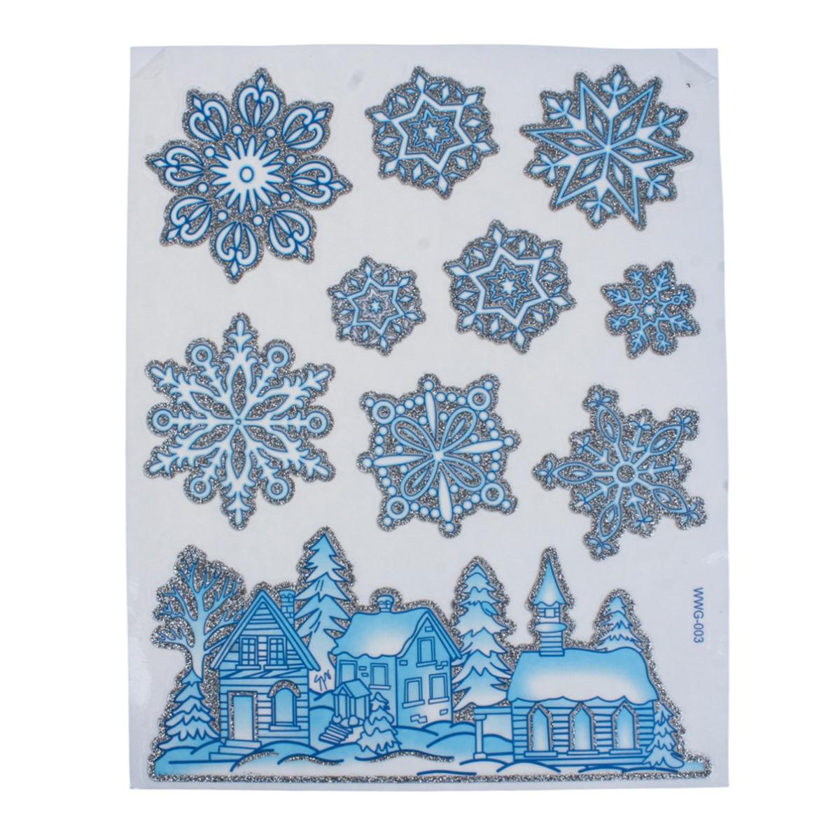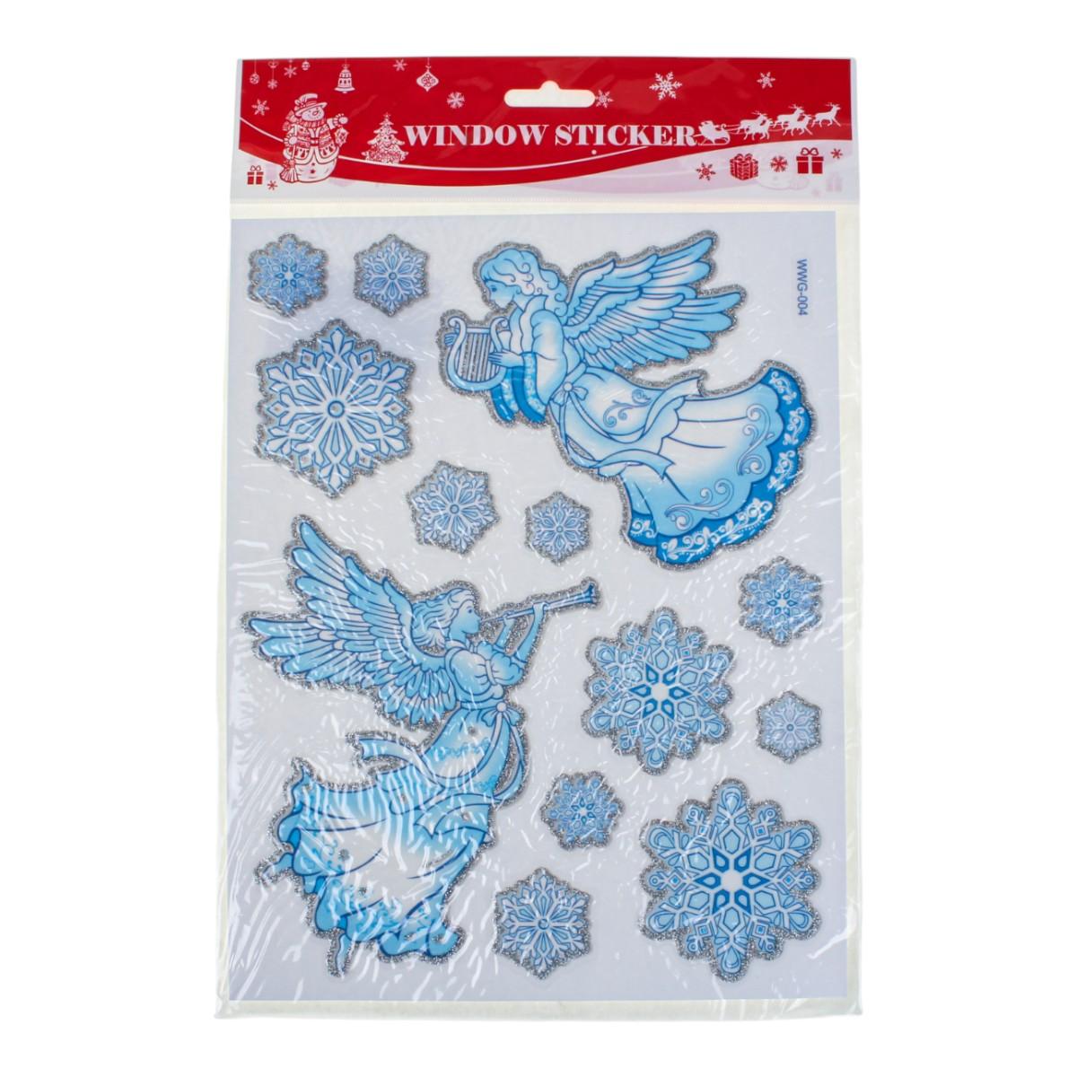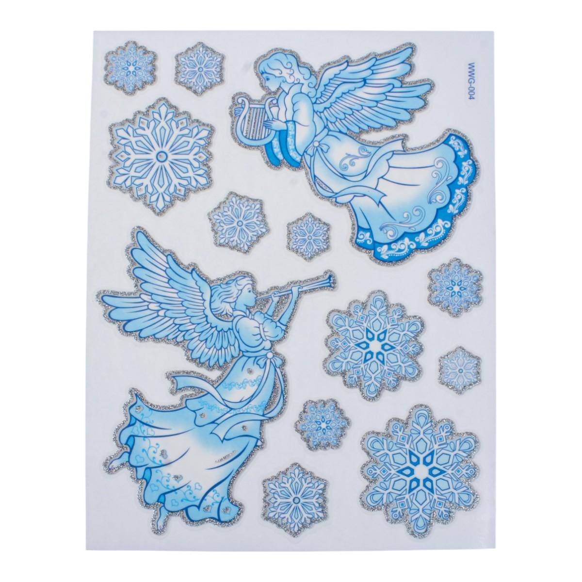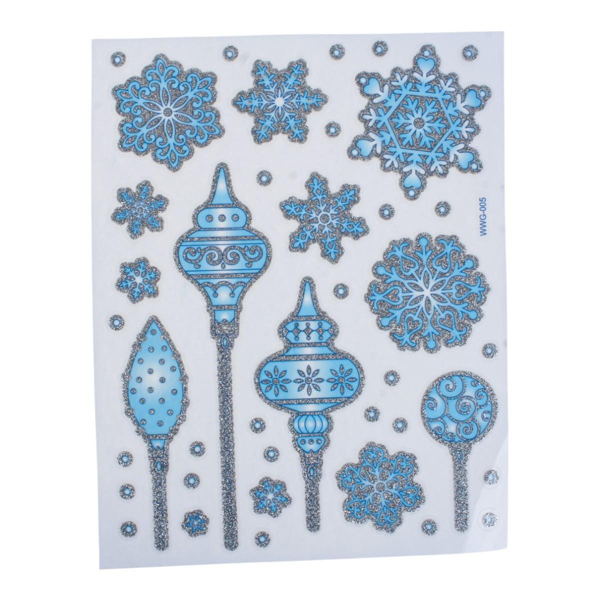Наклейка новогодняя 20×30 см, микс, светло-голубой цвет, пакет, зимние рисунки: снеговик, снежинки, Дед Мороз
