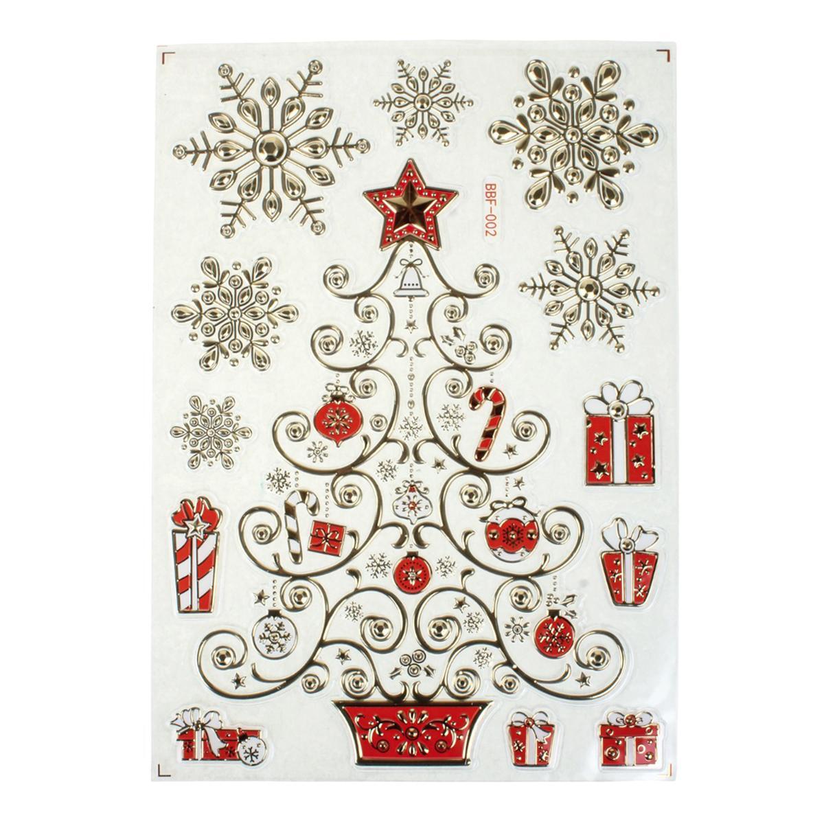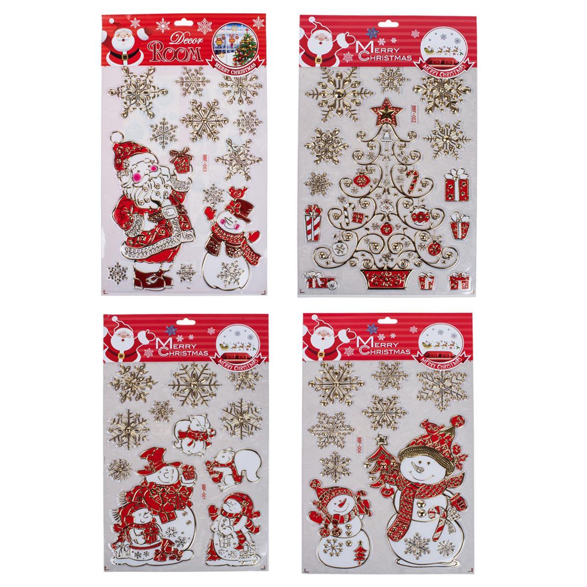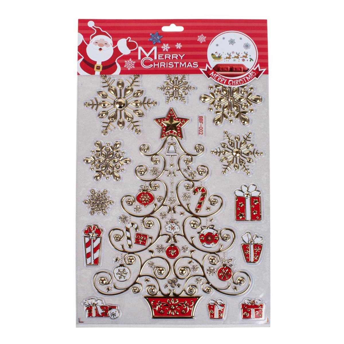 Новогодняя наклейка 22×37 см, микс, 1 лист, красный с золотым, пакет, мгновенный праздничный декор