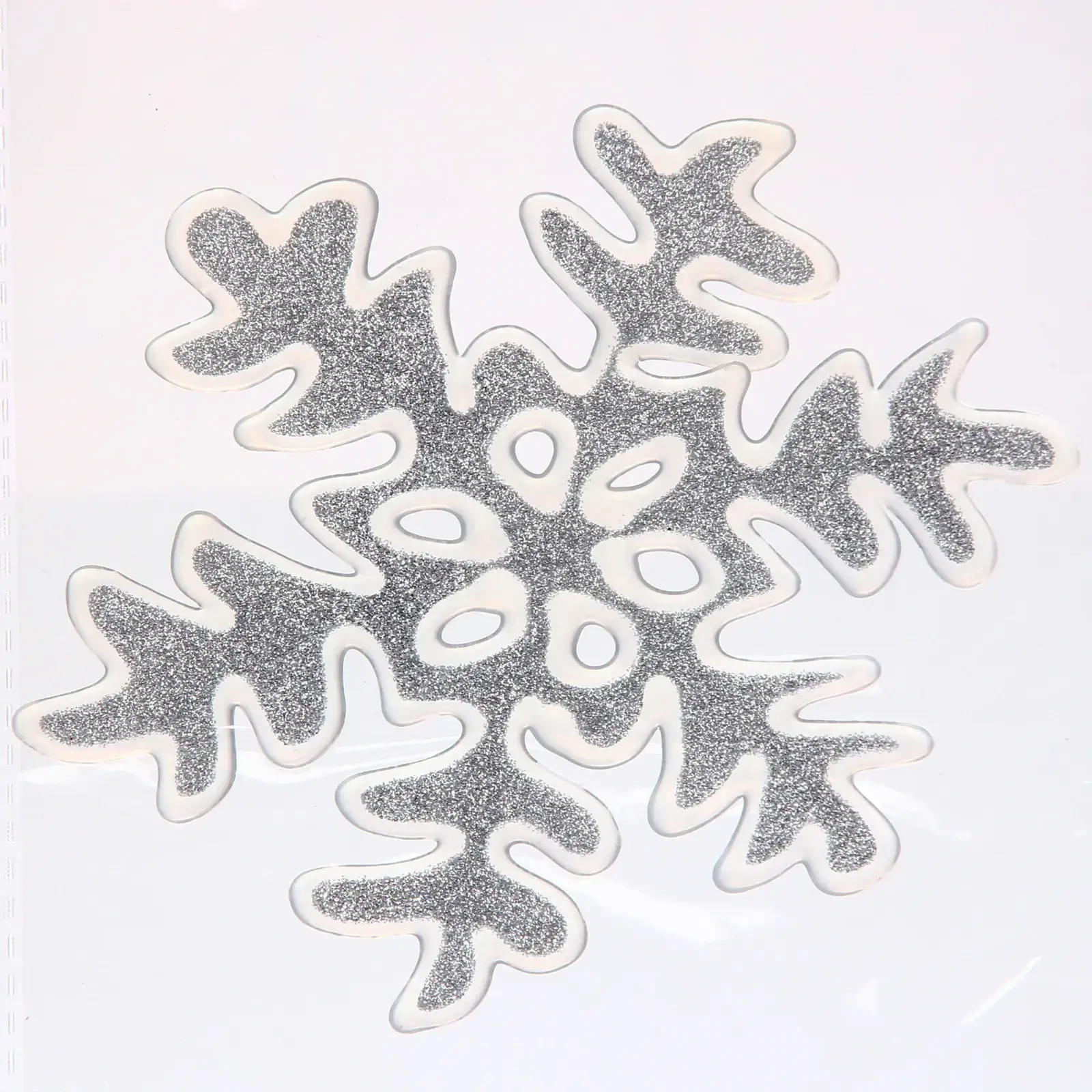 Серебристая снежинка из гибкого силикона станет изящным украшением окон, зеркал и стеклянных поверхностей. Идеально подходит для новогоднего декора дома, офиса или витрин — превращает обычные поверхности в волшебные зимние пейзажи.