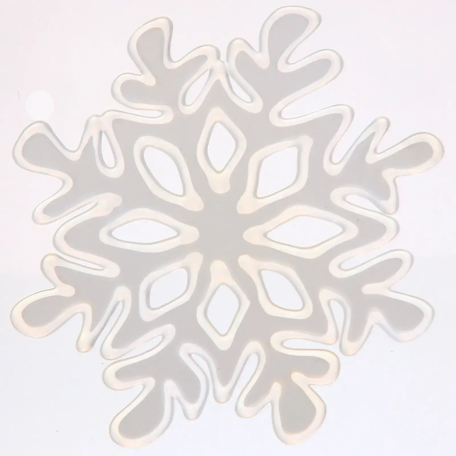Гибкий силикон сохраняет форму даже при многократном использовании. Чёткий контур рисунка (15х20 см) хорошо заметен на расстоянии, создавая объёмный 3D-эффект. Белый цвет гармонирует с любыми оттенками зимнего декора.