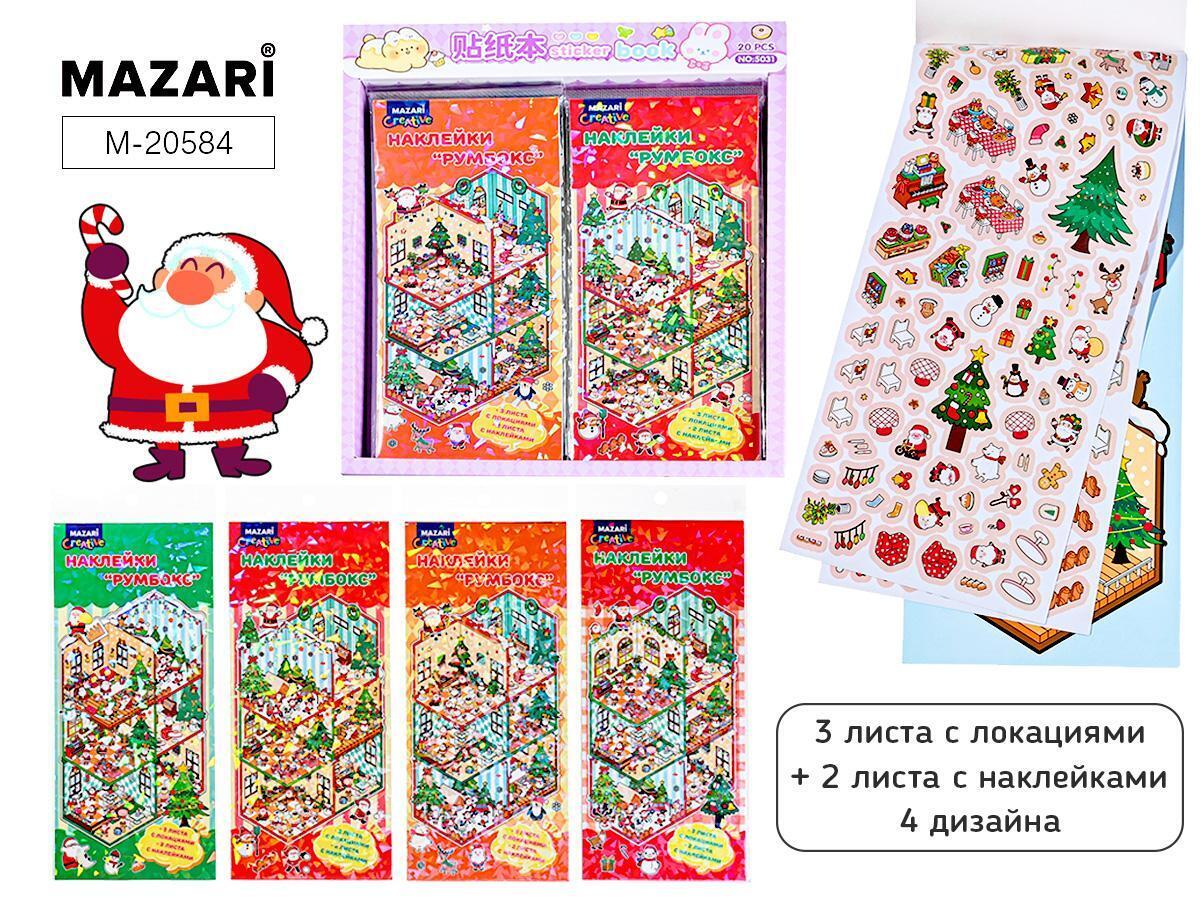 Наклейки новогодние 10.5x23.3см, 3 листа с локациями + 2 листа с элементами, 4 дизайна в ассортименте