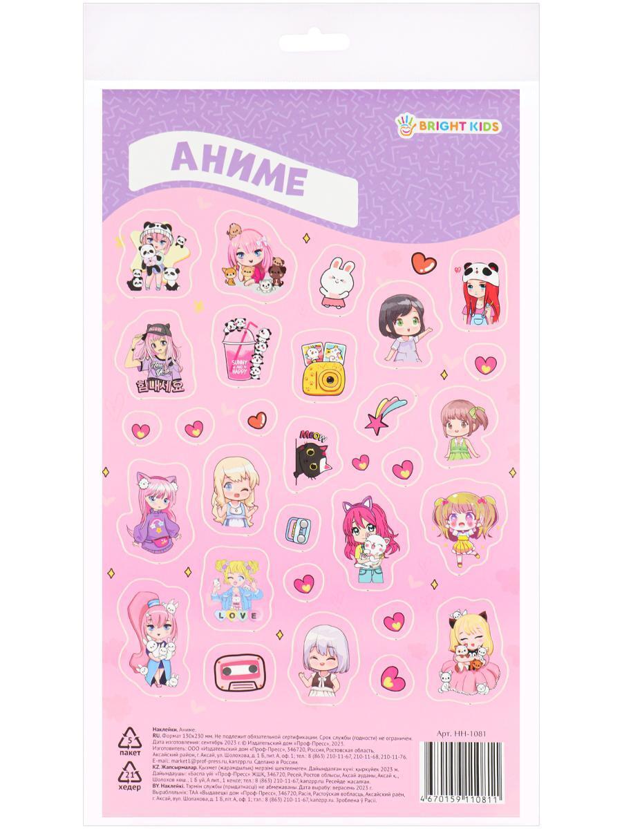 Наклейки "Аниме" самоклеящиеся, 130х230 мм, лазерная высечка, для творчества и декора