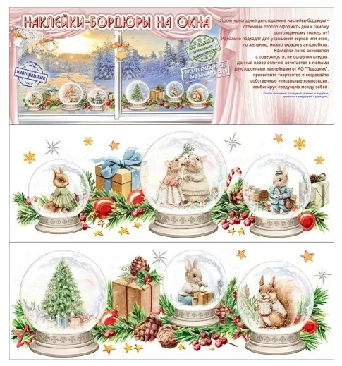 Создайте атмосферу праздника в любом помещении за считанные секунды – яркие двусторонние наклейки‑бордюры с милыми зверушками превратят окна, стены и зеркала в настоящую новогоднюю сказку.