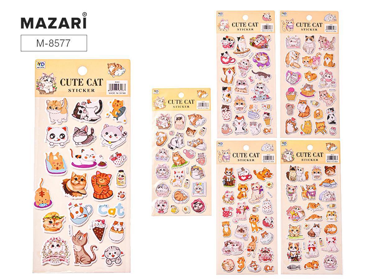 Наклейки декоративные "Котиики" 10х22 см, 6 дизайнов, самоклеящиеся (Mazari)