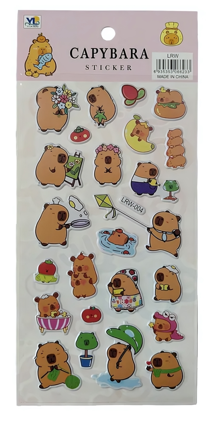 Наклейки декоративные «Капибара», 9.4×18см, фигурные, 6 дизайнов, цвет в ассортименте