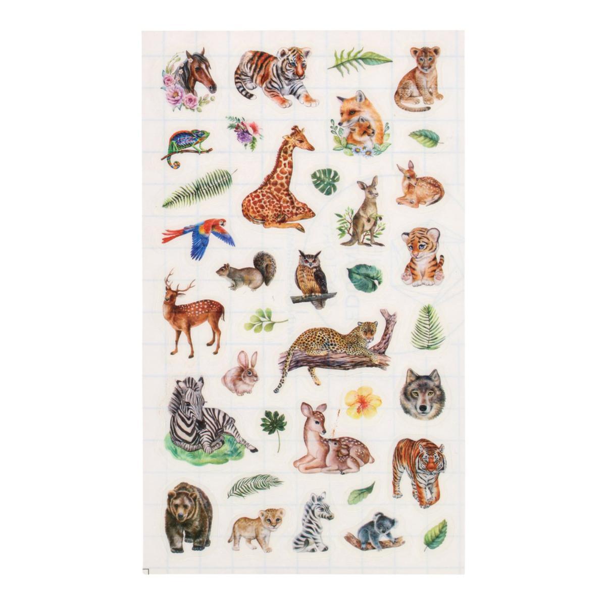 Водостойкая виниловая основа выдерживает влажную уборку. Плотная структура позволяет переклеивать элементы до 3 раз без потери адгезии. Каждое животное и растение имеет четкие контуры для удобного вырезания.