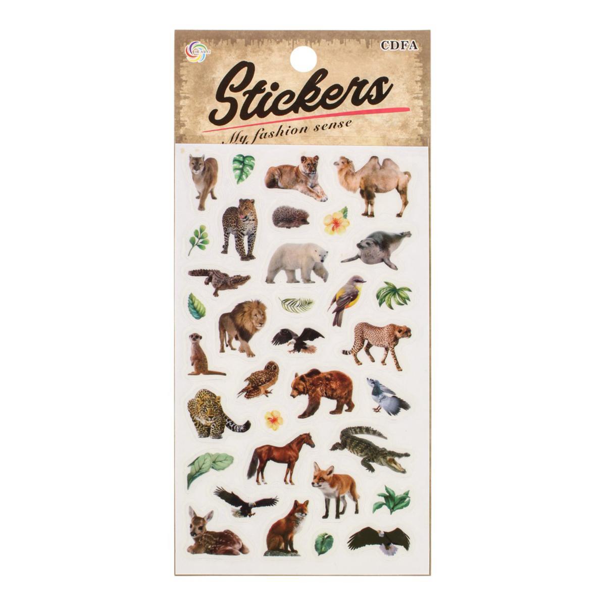 Наклейки "Дикие животные" 21,5x11 см, светящиеся в темноте, виниловая пленка, водостойкие