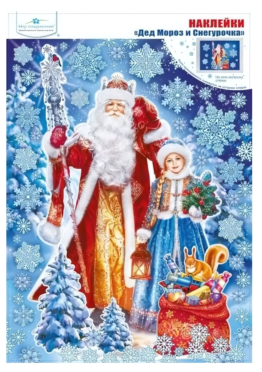 Создайте атмосферу настоящей зимней сказки с яркими интерьерными наклейками формата А3. Изображение Деда Мороза и Снегурочки, окружённых мерцающими снежинками и подарками, моментально превращает любое пространство в праздничную зону. Эти наклейки помогут вам украсить окно, витрину или стену, добавив уюта и тепла вашему интерьеру.