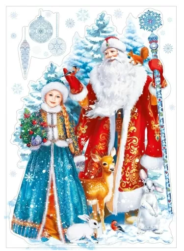 Создайте атмосферу зимних праздников с многоразовыми двусторонними наклейками формата А4 с изображениями главных символов Нового года — Дедушки Мороза и Снегурочки. Эти стильные наклейки идеально подходят для украшения окон, зеркал, витрин и стен. Яркие герои в традиционных нарядах, вместе с очаровательными лесными зверями, помогут вам и вашим детям почувствовать приближение волшебства зимних праздников!