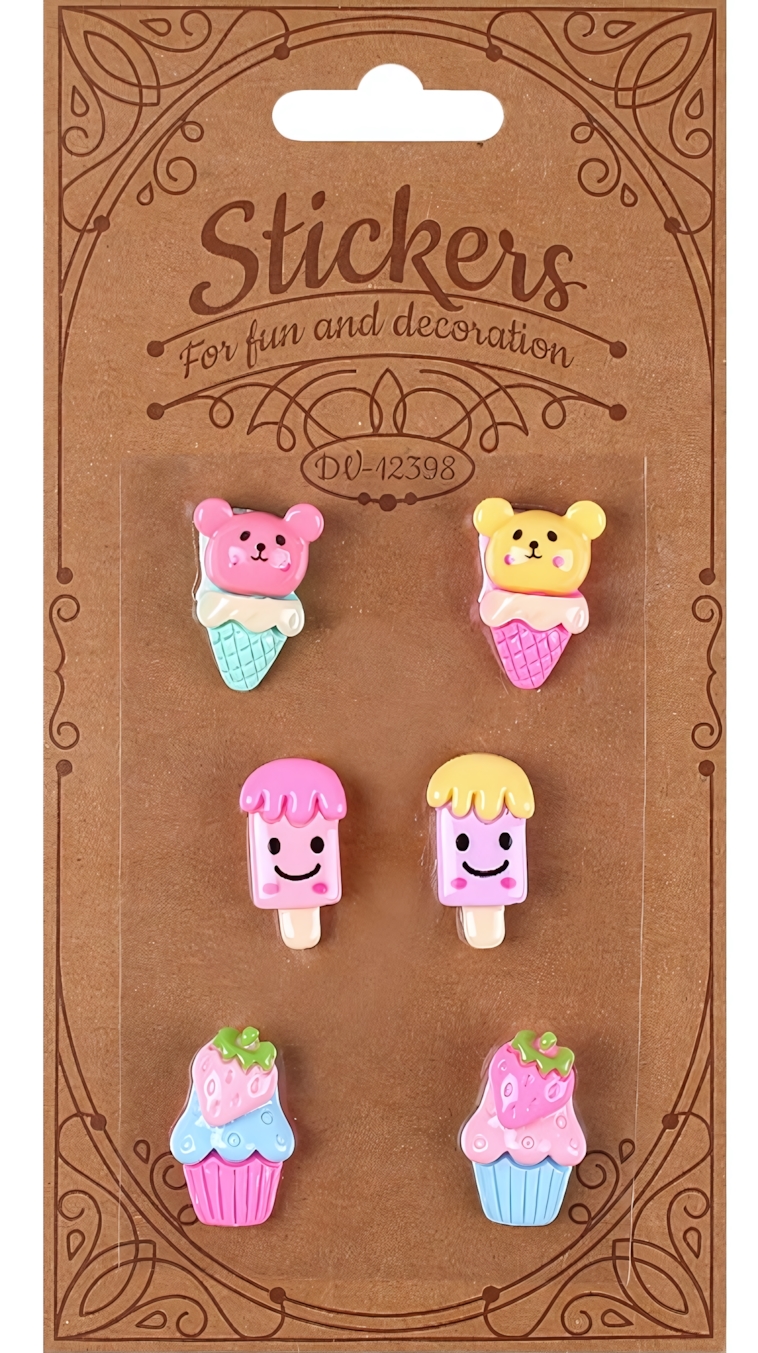 Объемные наклейки «Фигурки» создают настроение с первого взгляда и легко превращают обычные вещи в оригинальные и запоминающиеся. Милые сладости в пастельных оттенках добавят уюта и индивидуальности тетрадям, блокнотам, открыткам и подарочной упаковке.