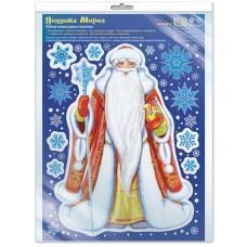 Наклейки на окна, мгновенный новогодний уют, дедушка мороз, 33×23см, серебристая металлизация, многоразовые