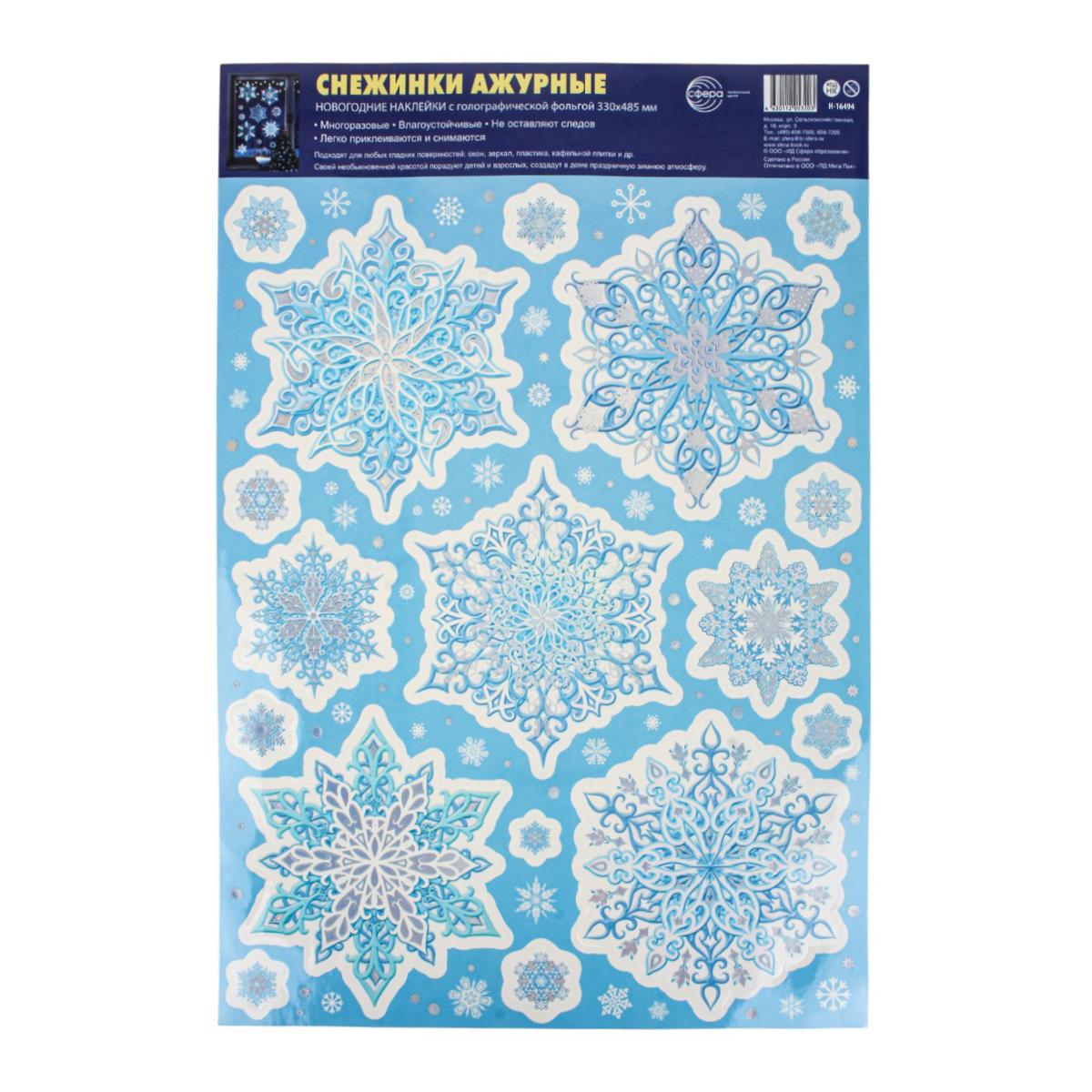 Наклейки упакованы в прозрачный пакет с удобным держателем, что обеспечивает их сохранность и удобство хранения. Размер листа — 330×485 мм (формат А3+), что позволяет разместить на нём множество снежинок разного размера для создания масштабных декоративных композиций. Эти украшения станут прекрасным дополнением к вашему новогоднему декору и подарят ощущение волшебства и праздника всем, кто их увидит.