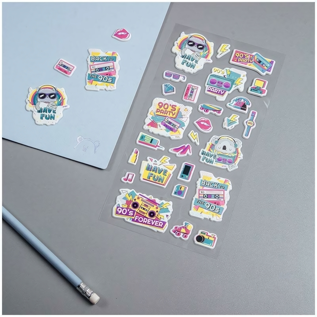 Наклейки объемные «90's Party» 10х19 см, 10-15 шт., многоразовые, вспененный полимер, европодвес (MESHU)