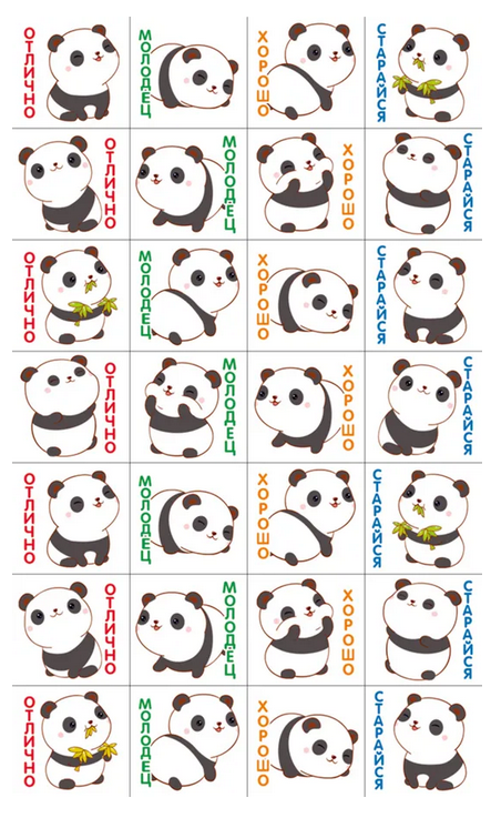 Наклейки-оценки А6 с пандами, 30 шт, мультяшный стиль, цвет в ассортименте