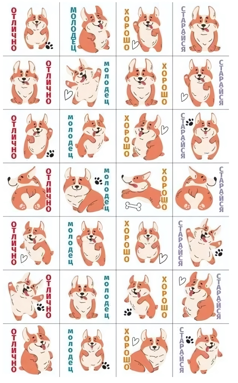 Наклейки-оценки А6 «Корги» — яркое поощрение и мотивация